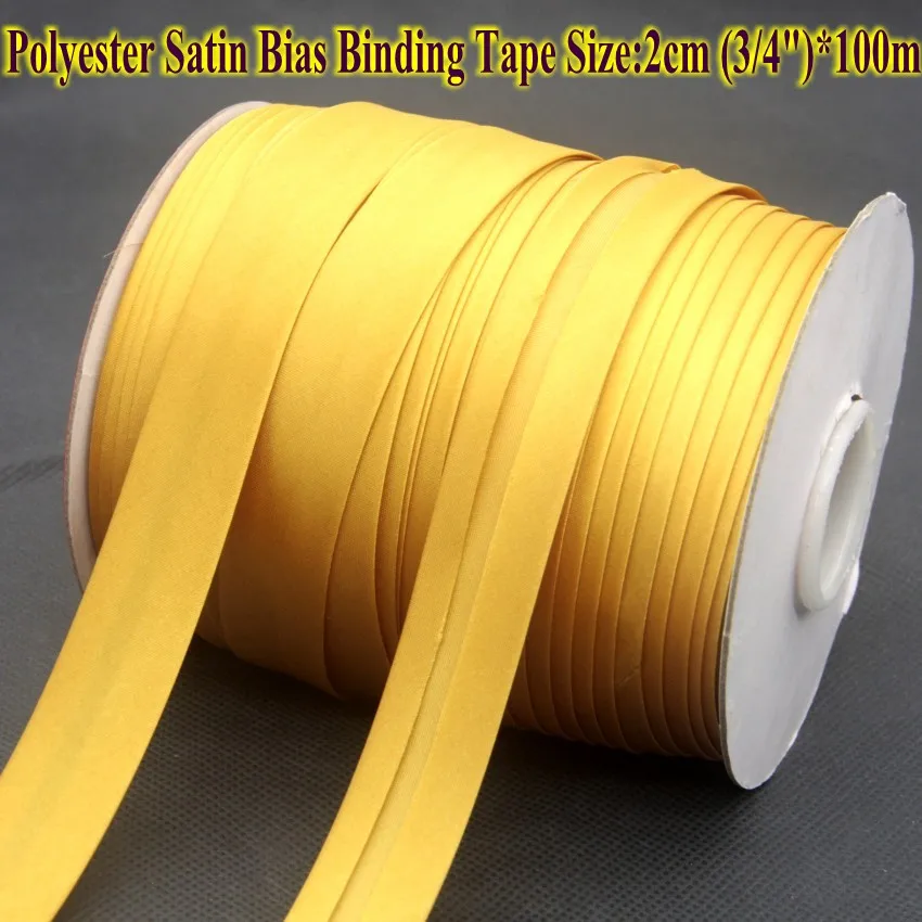 Бесплатная доставка-полиэфирная атласная переплетная лента, размер: 20 мм, 2 см, 34 дюйма, 100 м, края одежды, темно-золотой, для косплея, костюма, платья