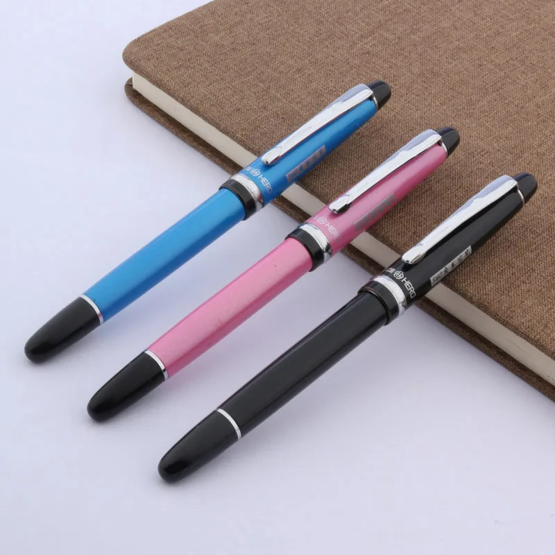 Ручка перьевая металлическая голубая, 360 градусов