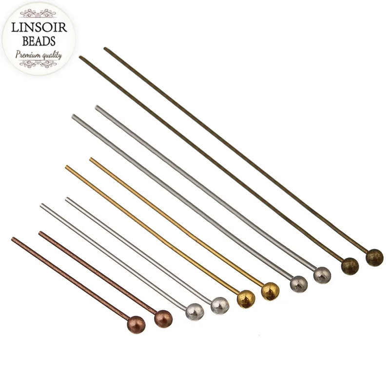 Штифты с шариковой головкой, длина 20, 25, 30, 40, 50 мм, диаметр 0,5 мм, золотистыесеребристые, для изготовления ювелирных украшений, 200 шт.лот, F352