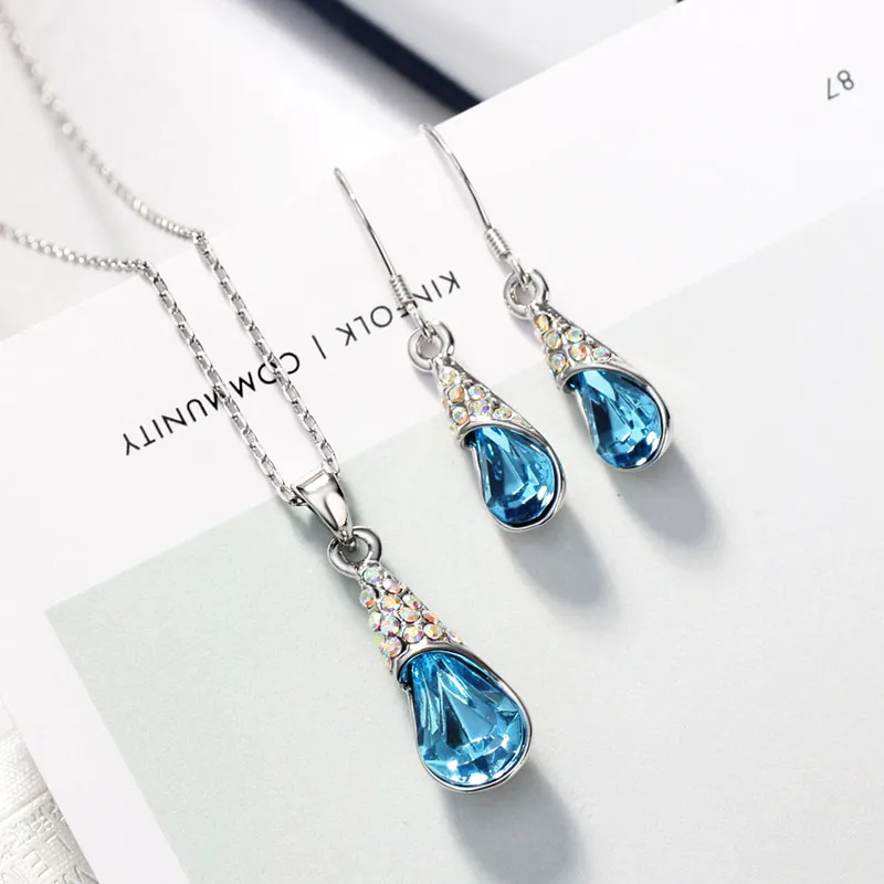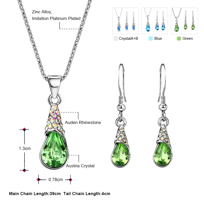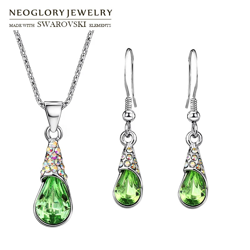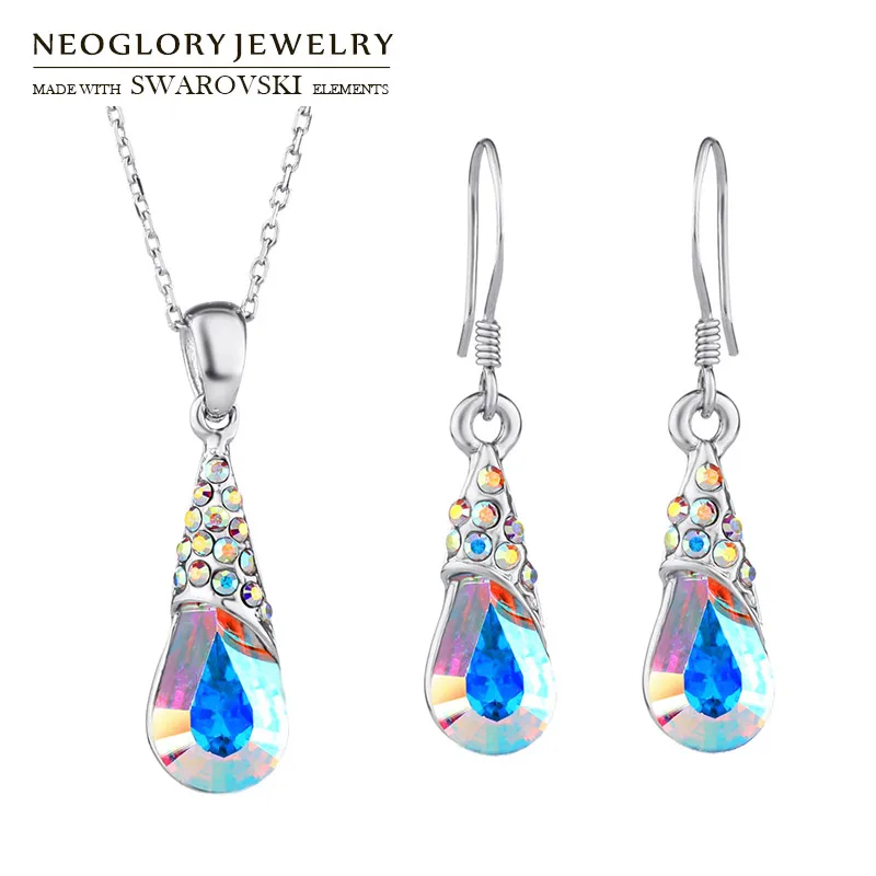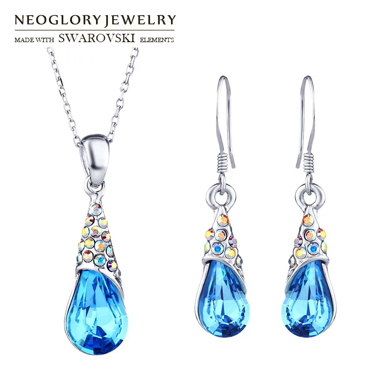 Набор ювелирных изделий Neoglory, с австрийскими кристаллами и золотыми стразы, в стиле капли воды, с покрытием из сплава