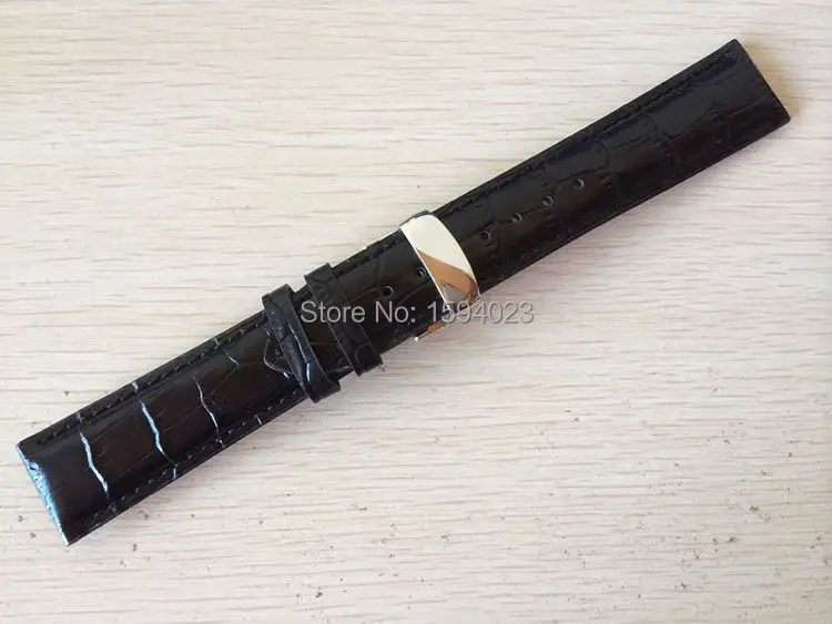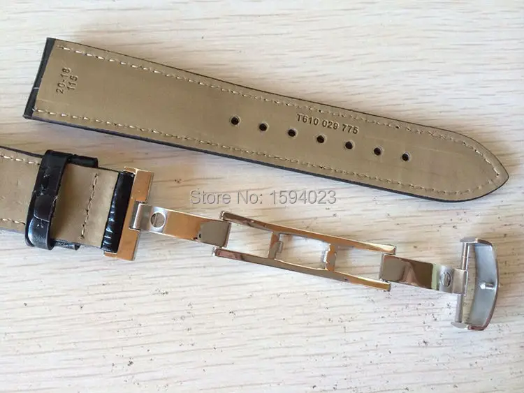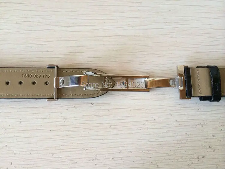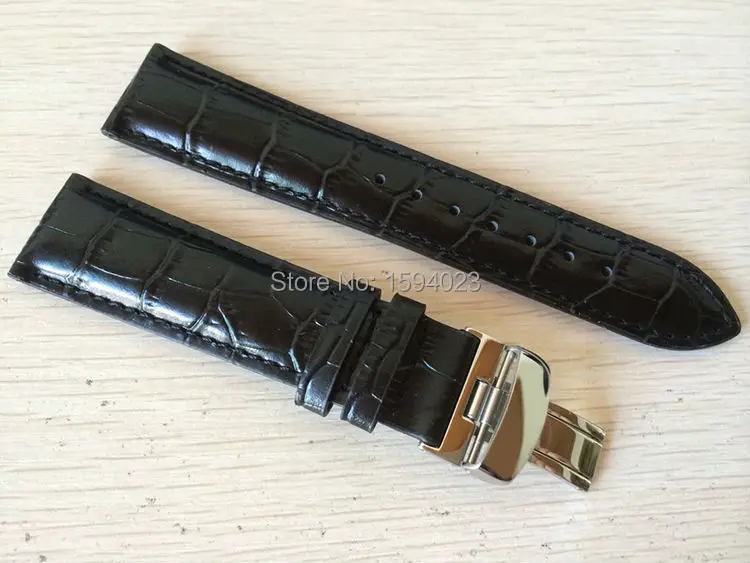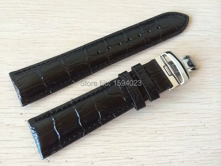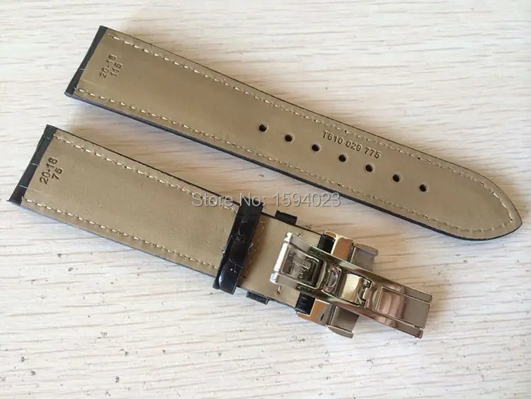 Пряжка 20 мм (пряжка 18 мм) T019430, серебристая пряжка-бабочка высокого качества + ремешок для часов из натуральной кожи черного цвета