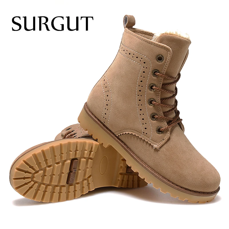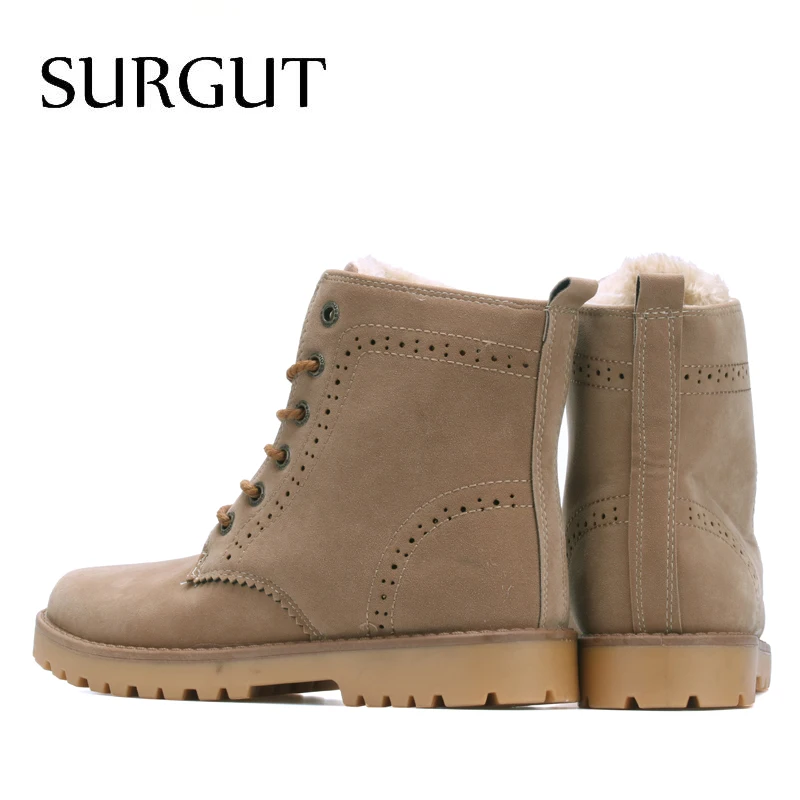 Мужские повседневные замшевые ботинки SURGUT, бежевые ботильоны для снега из натуральной кожи, обувь 35-44 размеров для зимы, 2019