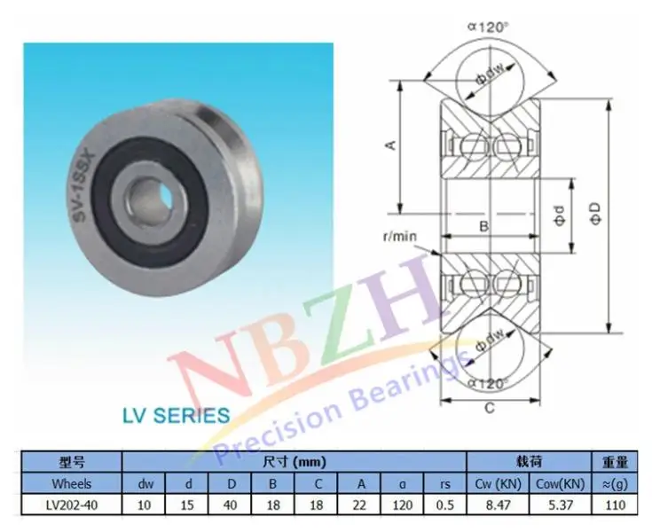 V-образные направляющие роликовые подшипники LV20240 ZZ флуоресцентные RV20215,4-10 15*40*18 (точные двухрядные шарики) флуоресцентные