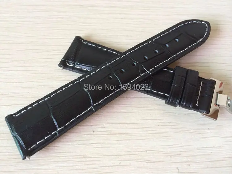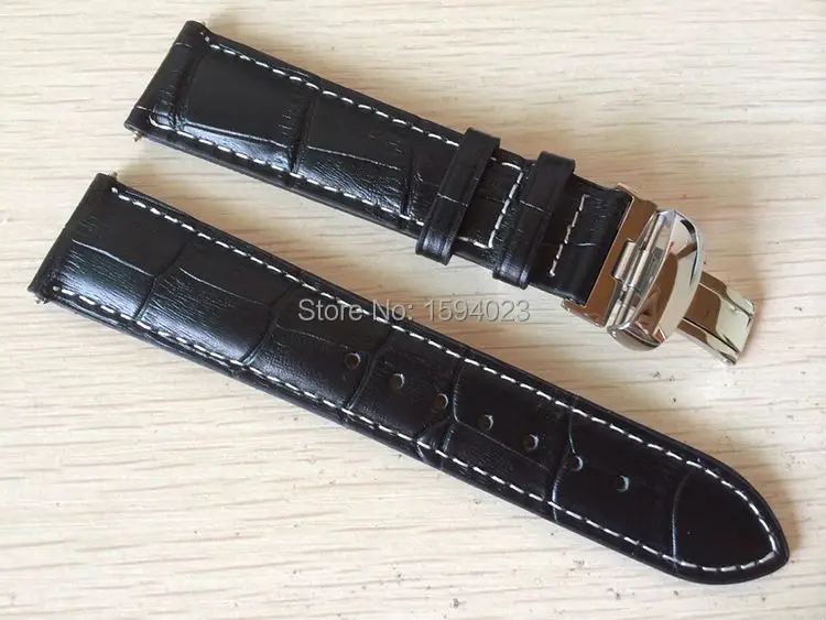 Пряжка 20 мм (пряжка 18 мм) T063617 T063639 T063610, серебристая пряжка-бабочка высокого качества + ремешок для часов из натуральной кожи черного цвета