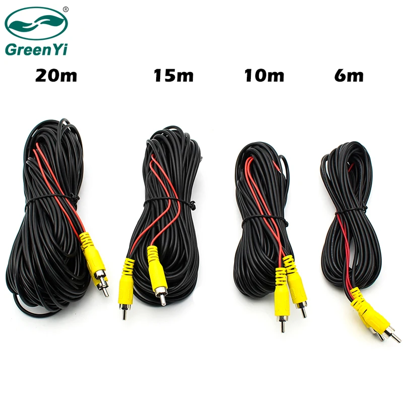 Кабель GreenYi AV RCA, 6 м, 10 м, 15 м, 20 м, для камеры заднего вида, с триггером для подключения к машине, парковочный монитор заднего вида