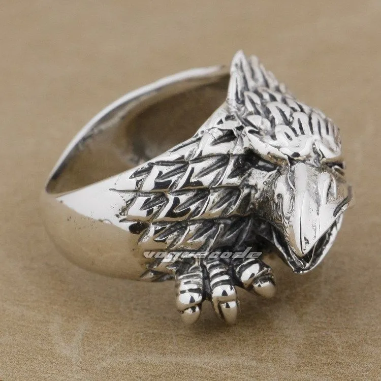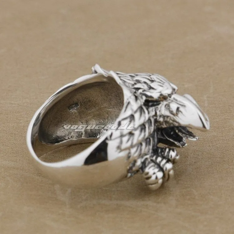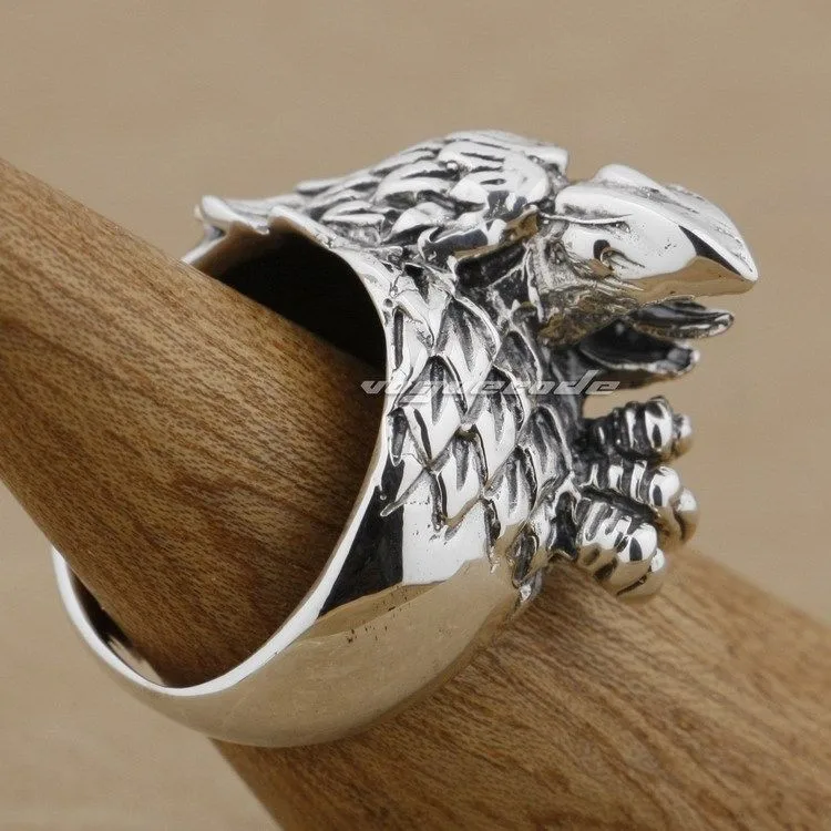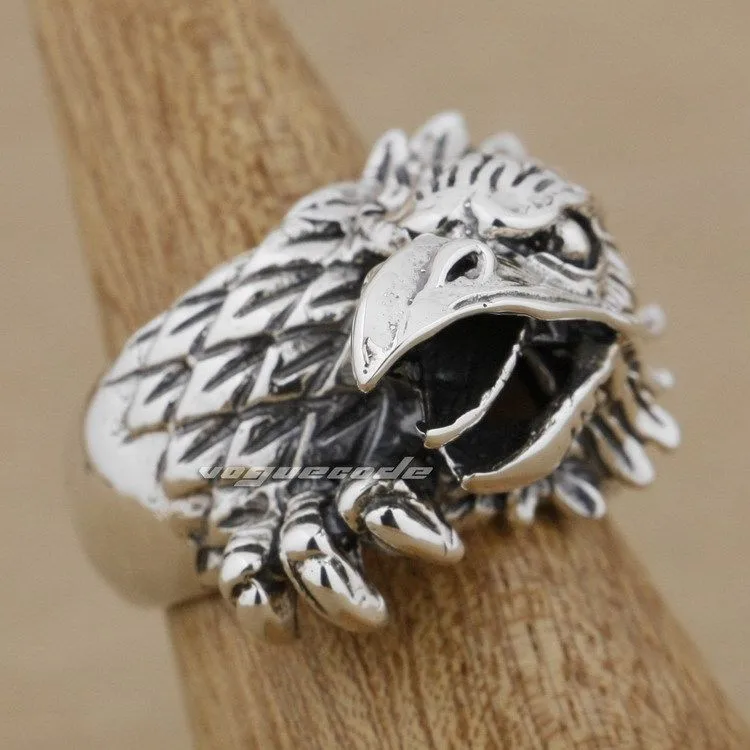 Солидное 925 пробы Серебряное Большое тяжелое мужское байкерское кольцо с орлом 9M006 размер США от 7 до 15