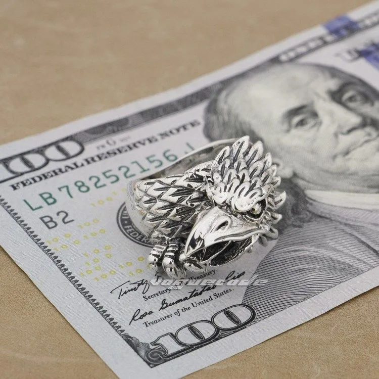 Это уникальное украшение станет прекрасным подарком для любого случая!Состояние:Новый и ручной работы в идеальной готовойМатериал:Высокое качество твердого 925 пробы серебра, Толстый и тяжелый!(Марка 925 торговой марки)Мы гарантируем, что это твердое 925 пробы серебра, если не полный возврат денег!Голова Орла:18 мм x 27 ммВес:Прибл.22ГраммыРазмер США:#7 ~ #15
