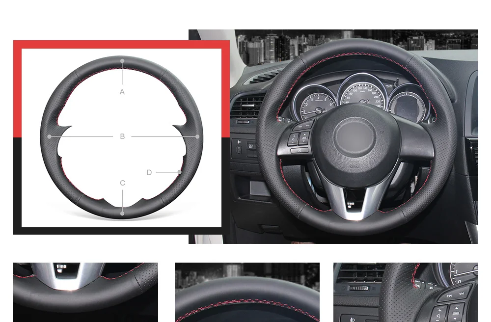 A + C: черная искусственная кожаB: черная перфорированная искусственная кожаD: Красная Нить