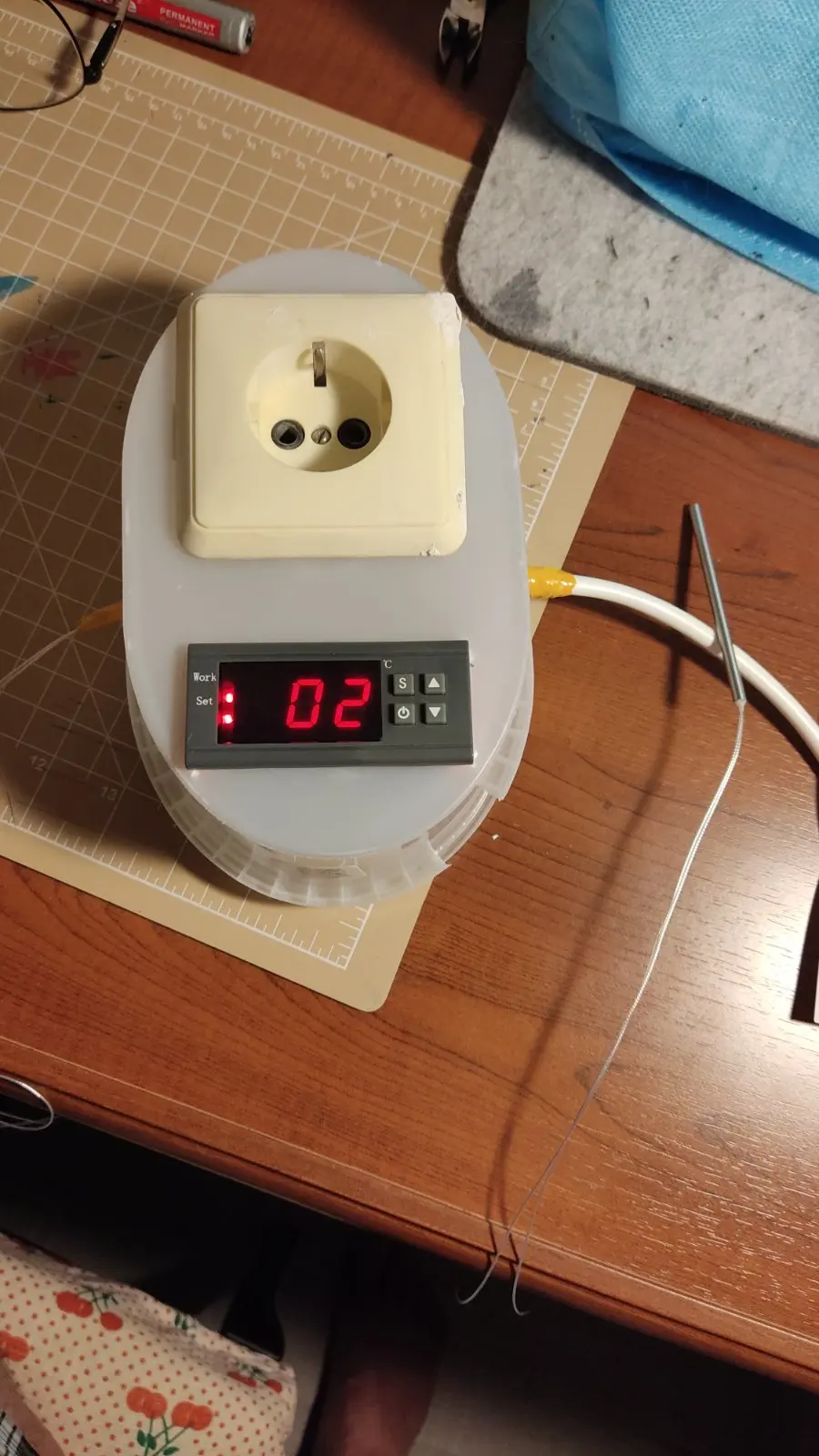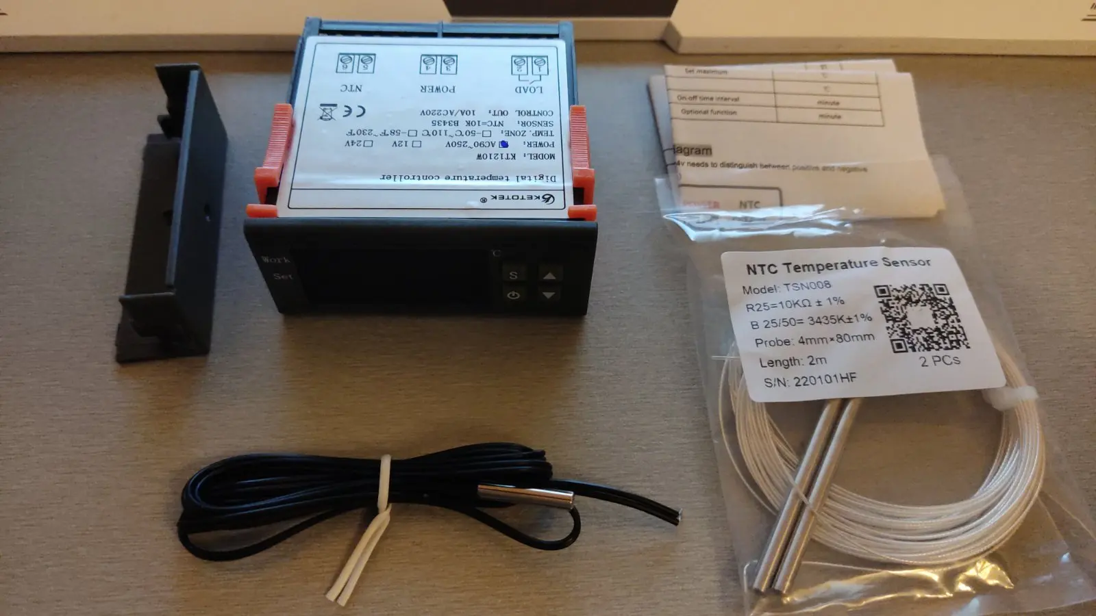 Дошло до Саратова за 3 недели. Упаковка: коробка картонная с терморегуляторомв пакете. В работе ещё не проверял, надеюсь проблем не будет. Будет стоять на старт/стопе при дистилляции. Размеры весьма скромные: 7 см ширина, 7,5 см глубина и 3 см высота. Штатный щуп довольно уныл для моих задач - гильза 2 см. Поэтому сразу заказал пару других температурных сенсоров.