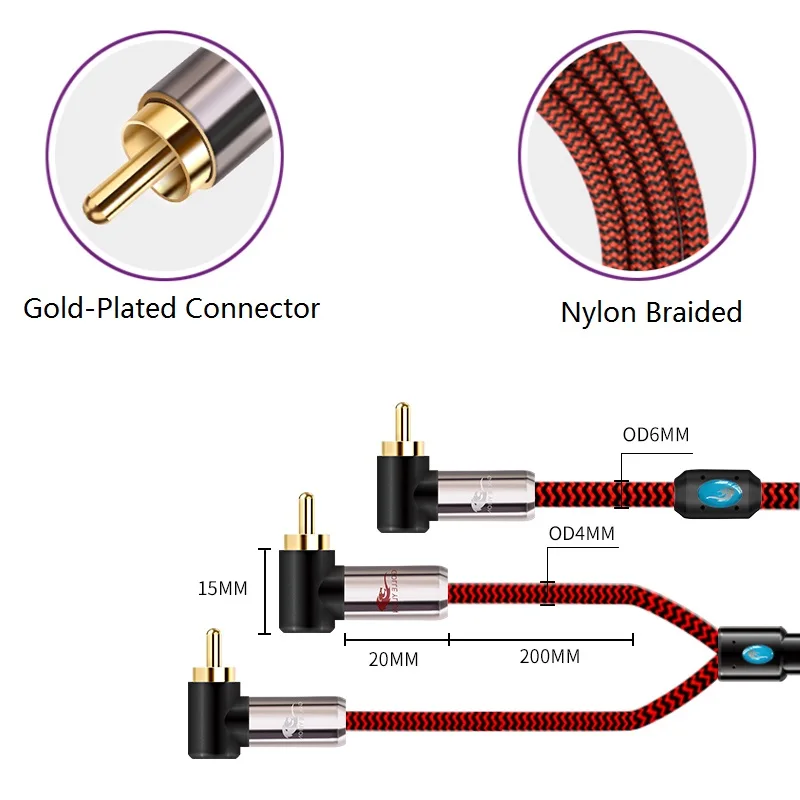 > Проводник Сердечника кабеля:Проводник из бескислородной меди обеспечивает отличную проводимость и оптимальную передачу сигнала. Высококачественная передача звука обеспечивает лучший звук. Аудиокабель подходит для вашего дома-развлечения, система Hi-Fi, микшер, сабвуфер, динамик, музыкальный инструмент и другие аудиоустройства.