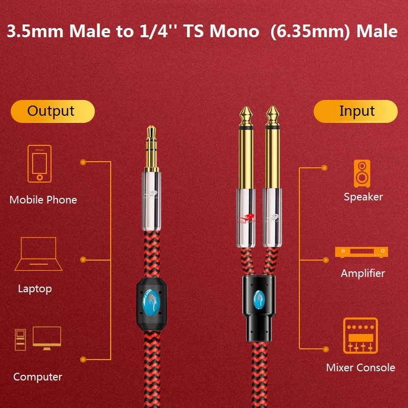 Усилитель для аудиокабеля TS моно-штекер, усилитель для аудиокабеля, 18 дюйма, 3,5 мм, 6,35 мм, 14 дюйма, для ПК, ноутбука, Hi-Fi, звуковая система, Y-образный разветвитель, экранированные шнуры