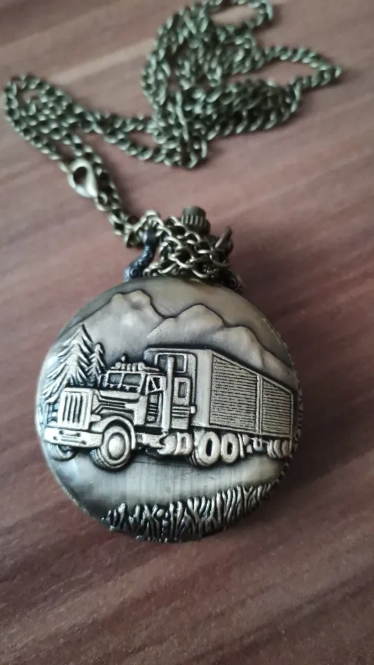Винтажные бронзовые карманные часы в стиле ретро с большим грузовиком и лесным деревом и цепочкой для автомобиля, карманные часы для водителя