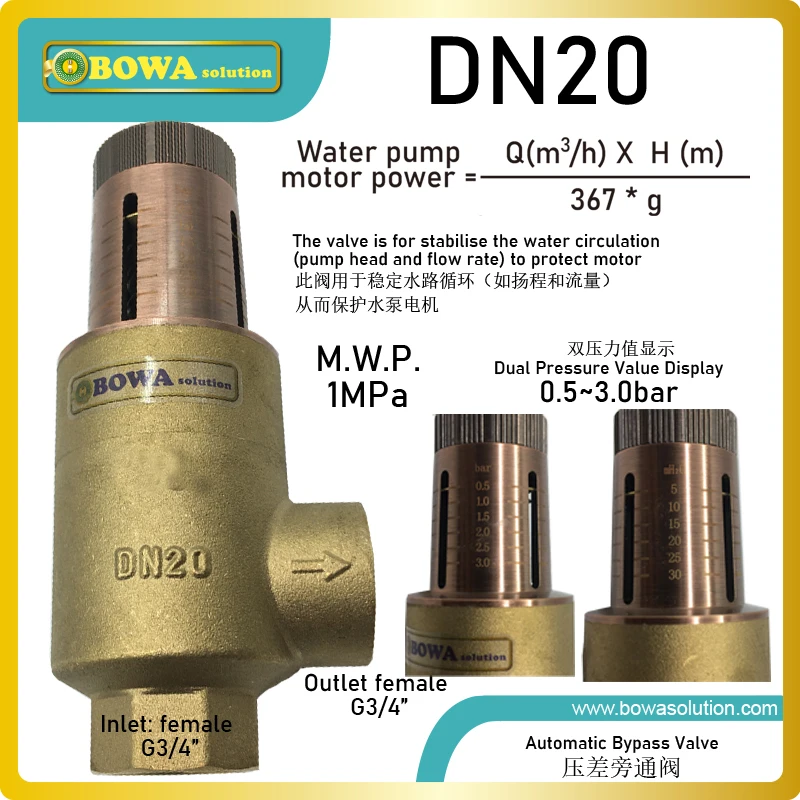 От 0,5 до 3 бар DN20 автоматический БАЙПАСНЫЕ клапаны начнет обходить поток, когда перепад давления достигнет настройки регулировки