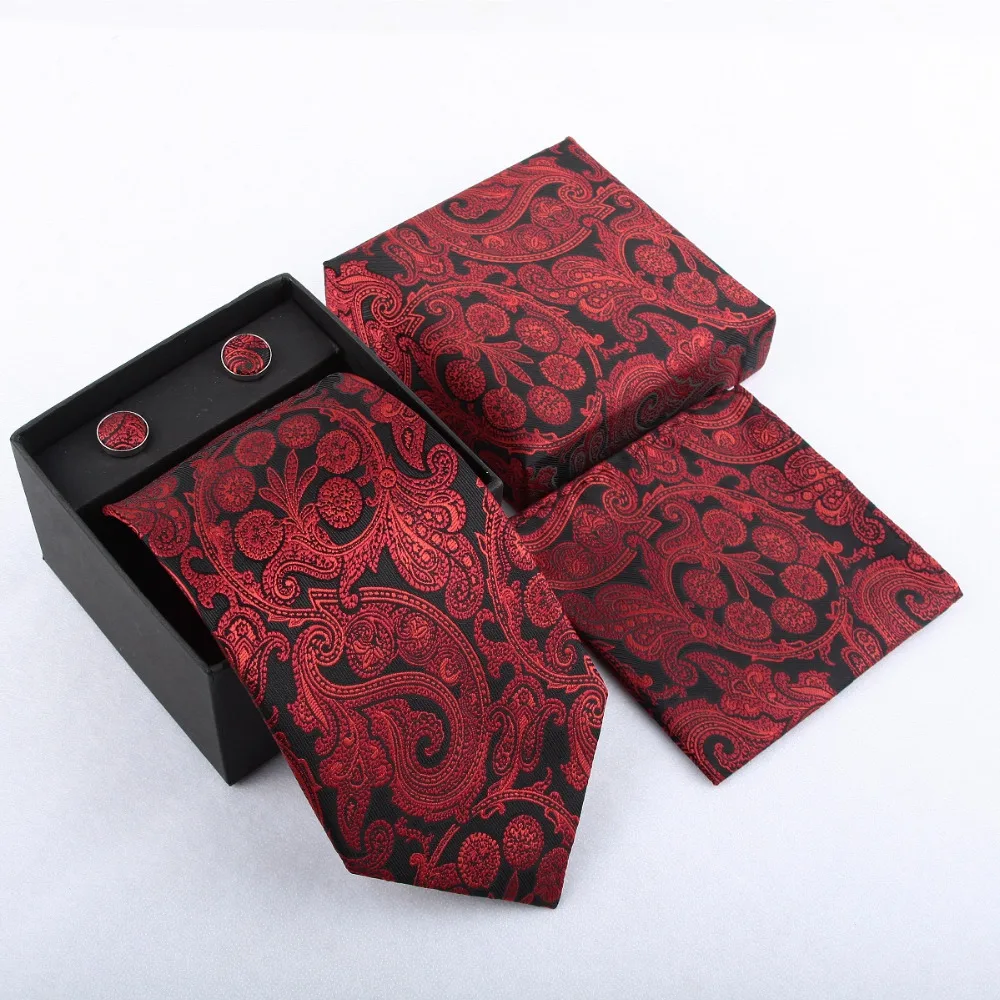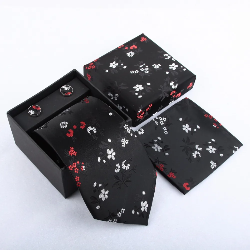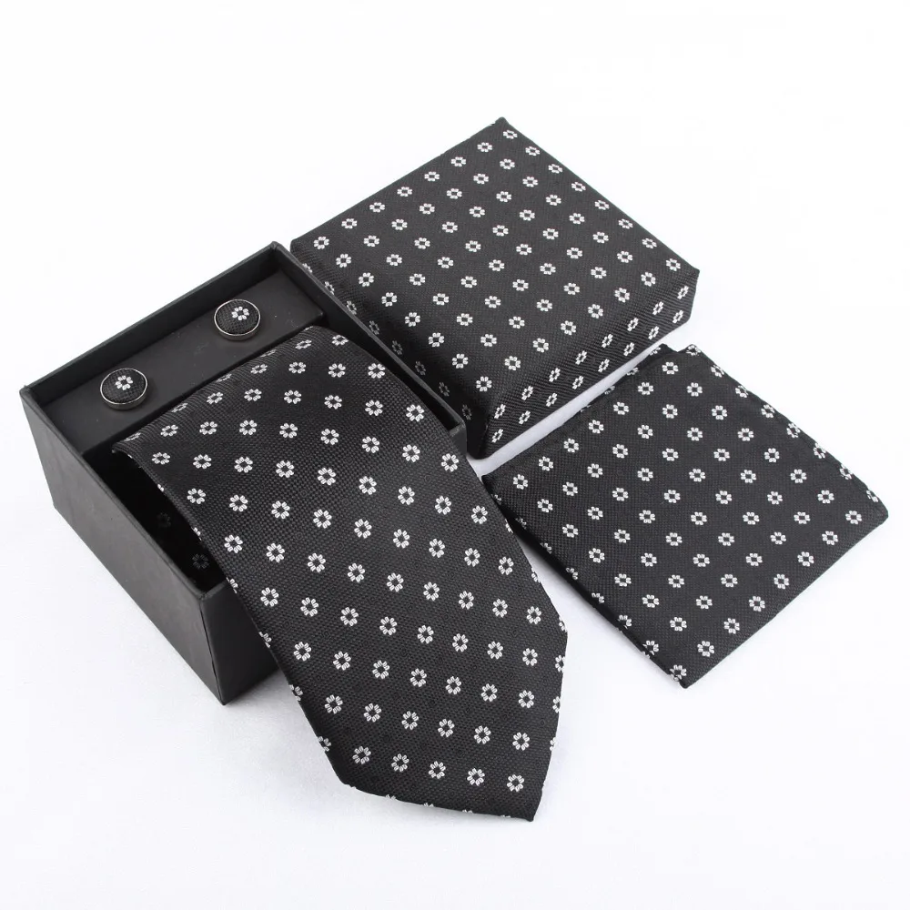 Набор галстуков HOOYI для мужчин, носовые платки запонки, Подарочная коробка, 2019