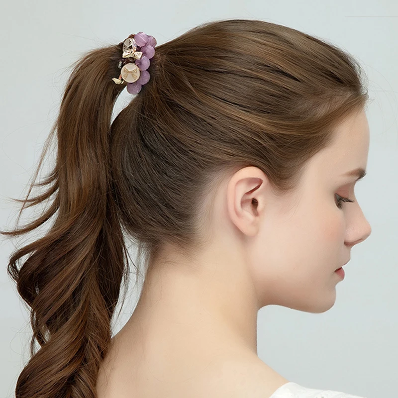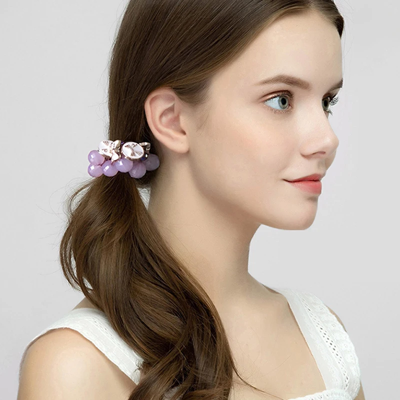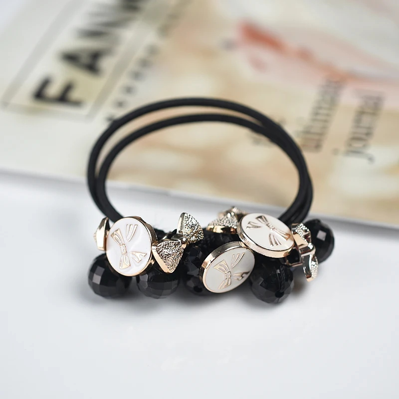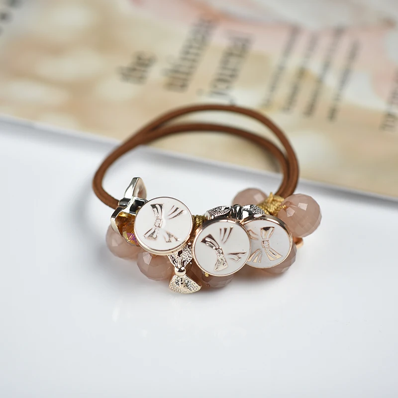 Женские аксессуары для волос, хрустальные резинки для волос с бусинами, резинки для волос с цветочным бантом, эластичные резинки для волос для девочек