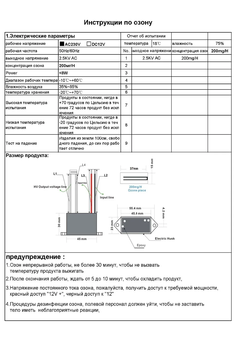 Очиститель воздуха для дома, керамическая пластина с выходной плотностью озона 200 мгч