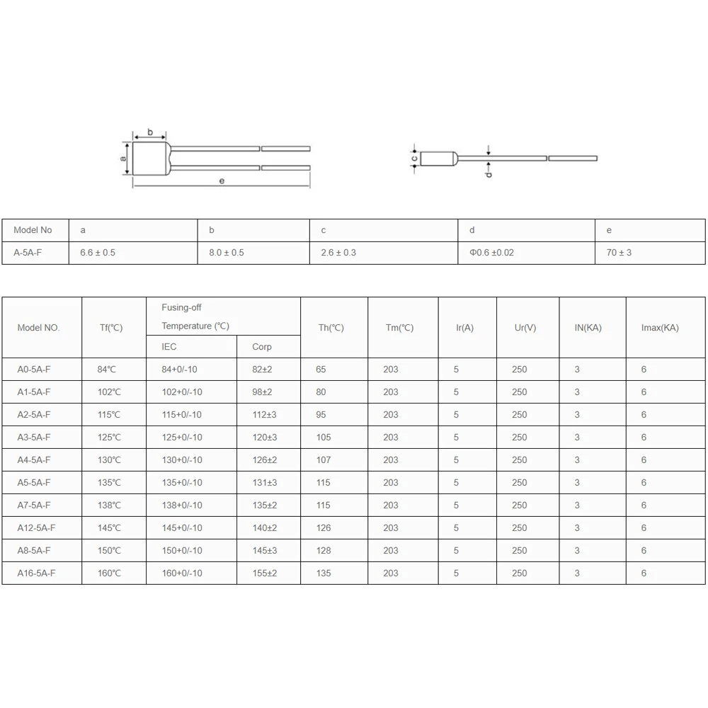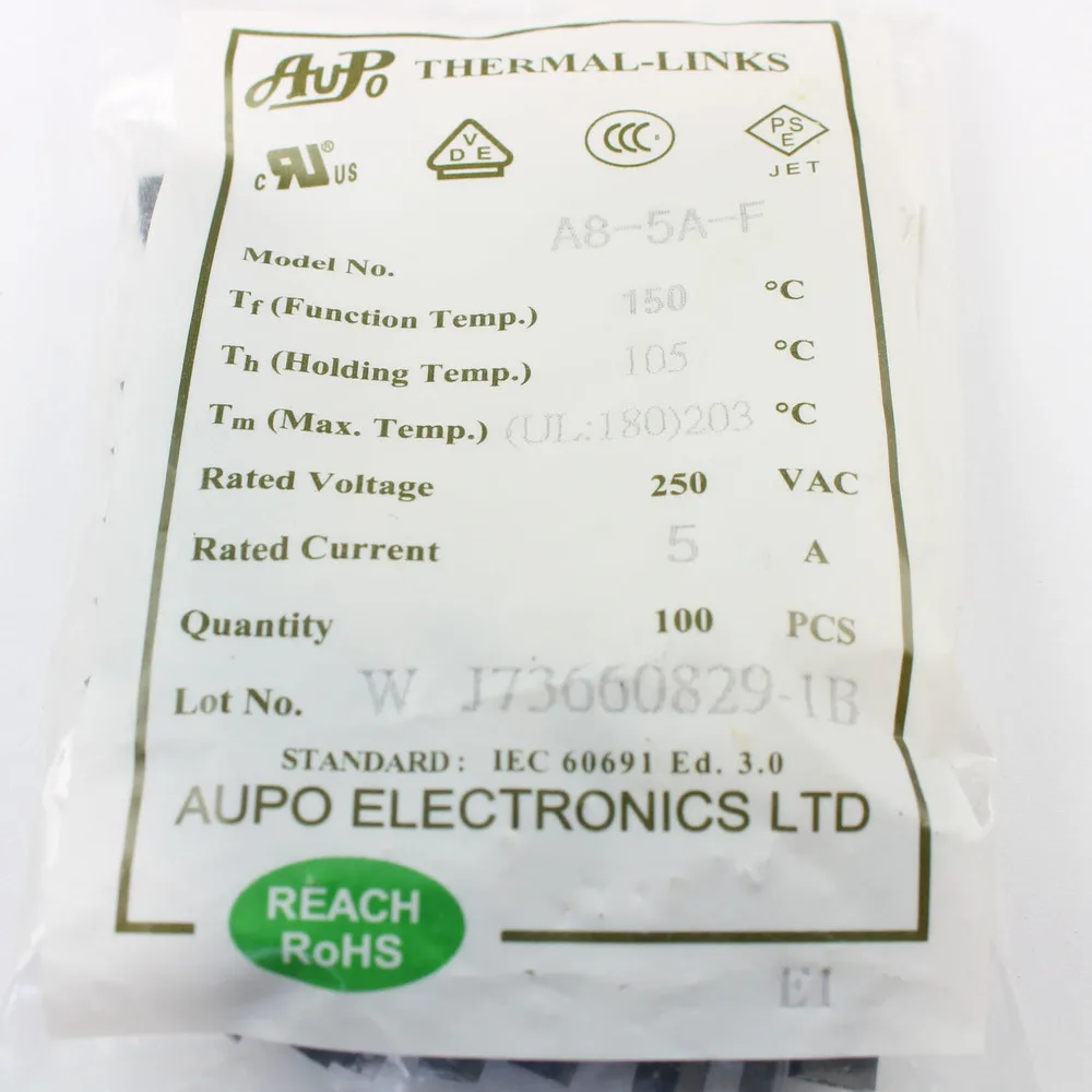 Термопредохранитель Aupo, 150 градусов, 250 В, 5 А, A8-5A-F, 10 шт. icon star icon star icon star icon star icon star