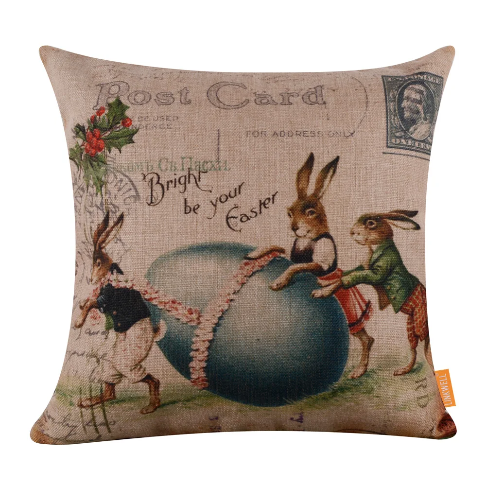 LINKWELL 45*45 см Ретро пасхальное яйцо кролик Мешковина наволочки счастливый кролик сезонное украшение праздник весенний подарок