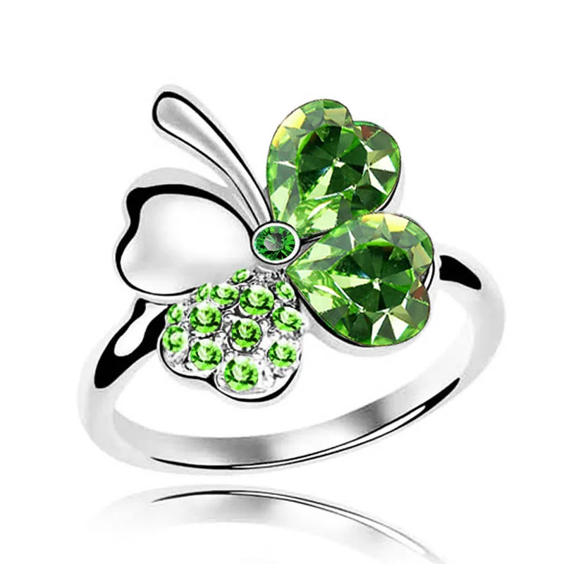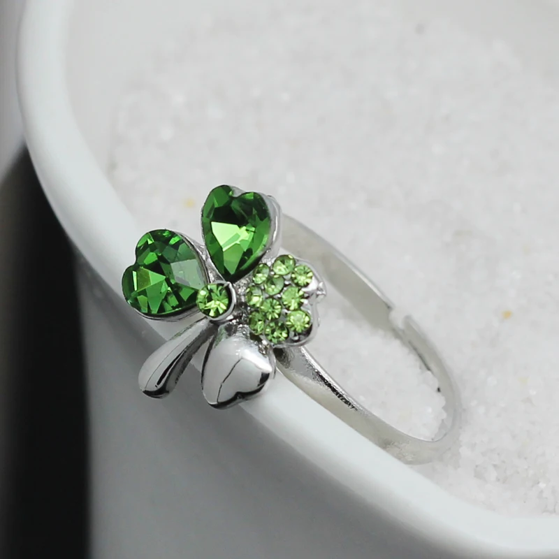 Новинка 2017, оптовая продажа с фабрики, кольца на палец с искусственным клевером, 4 листа, Листьев, сердца, ювелирные изделия 9554