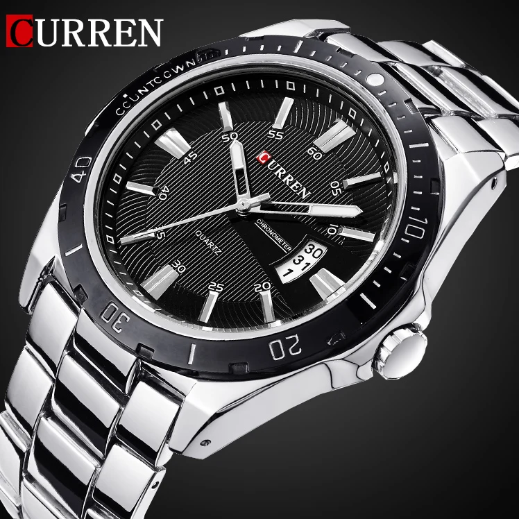 CURREN Мужские спортивные часы, повседневные кварцевые наручные часы из нержавеющей стали с датой, 2016
