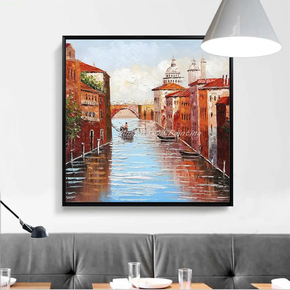Ручная роспись богатая текстура Венеция-город на воде пейзаж Масляные картины на холсте Современная абстрактная картина для гостиной домашний декор