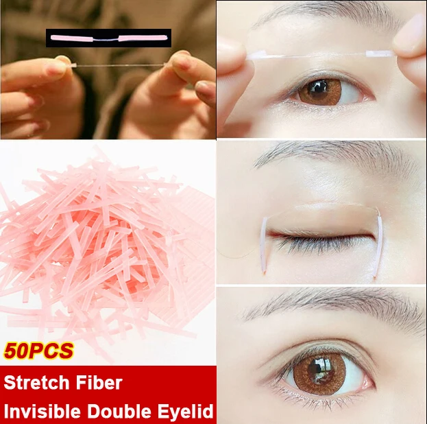 50 шт. Новейшие супер невидимые наклейка для двойного века, эластичные волоконные ленты для век, подтягивающие клейкие полоски, двухсторонняя лента для век