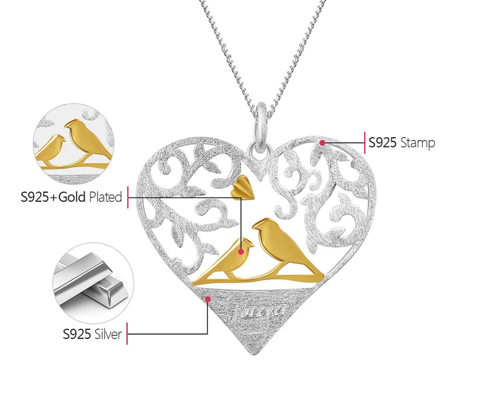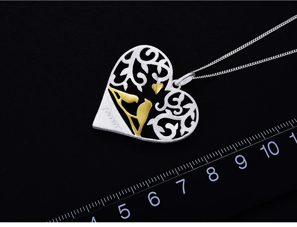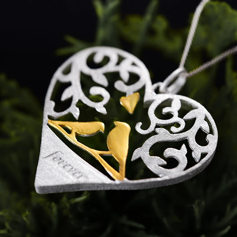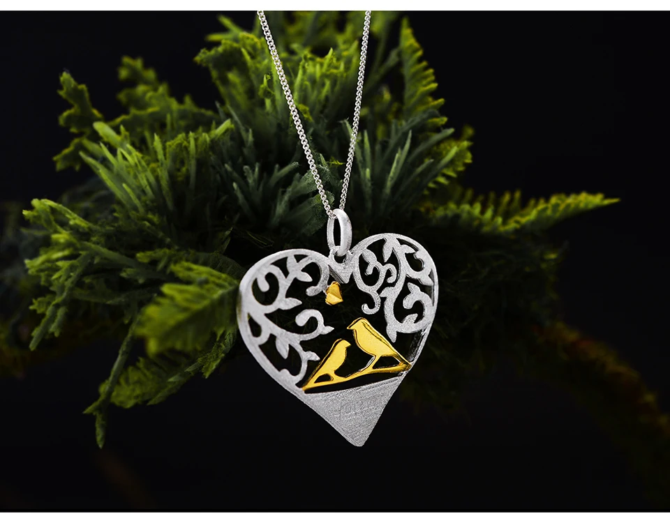 "Love Forever" изящный ручная работа птица пара кулон реального чистого стерлингового серебра 925 подвески серебро романтический сердце дизайн