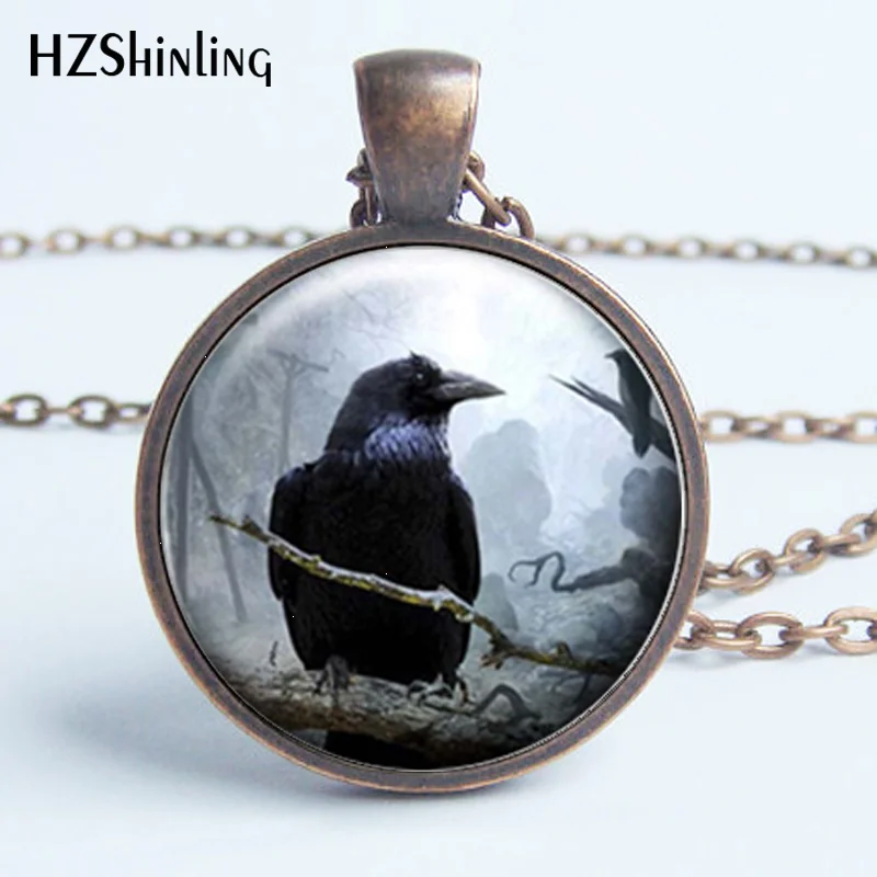 Женское круглое ожерелье с подвеской из стекла, жуткая черная птица, ворона, фотография, стеклянное ожерелье с кабошоном HZ1