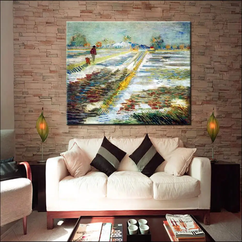 Пейзаж со снегом Винсента Ван Гога ручная работа известная картина маслом на холсте Настенная картина для гостиной украшение дома