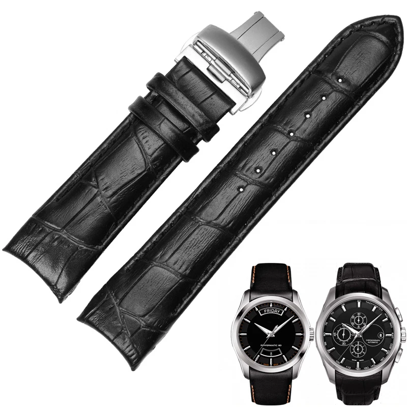 Ремешок для часов T035627 T035614A, серебристая пряжка-бабочка и черный браслет из натуральной кожи, 24 мм (22 мм)