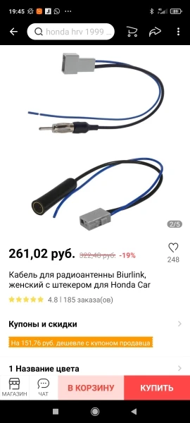 Радиоантенный кабель с гнездом и штекером для автомобиля Honda