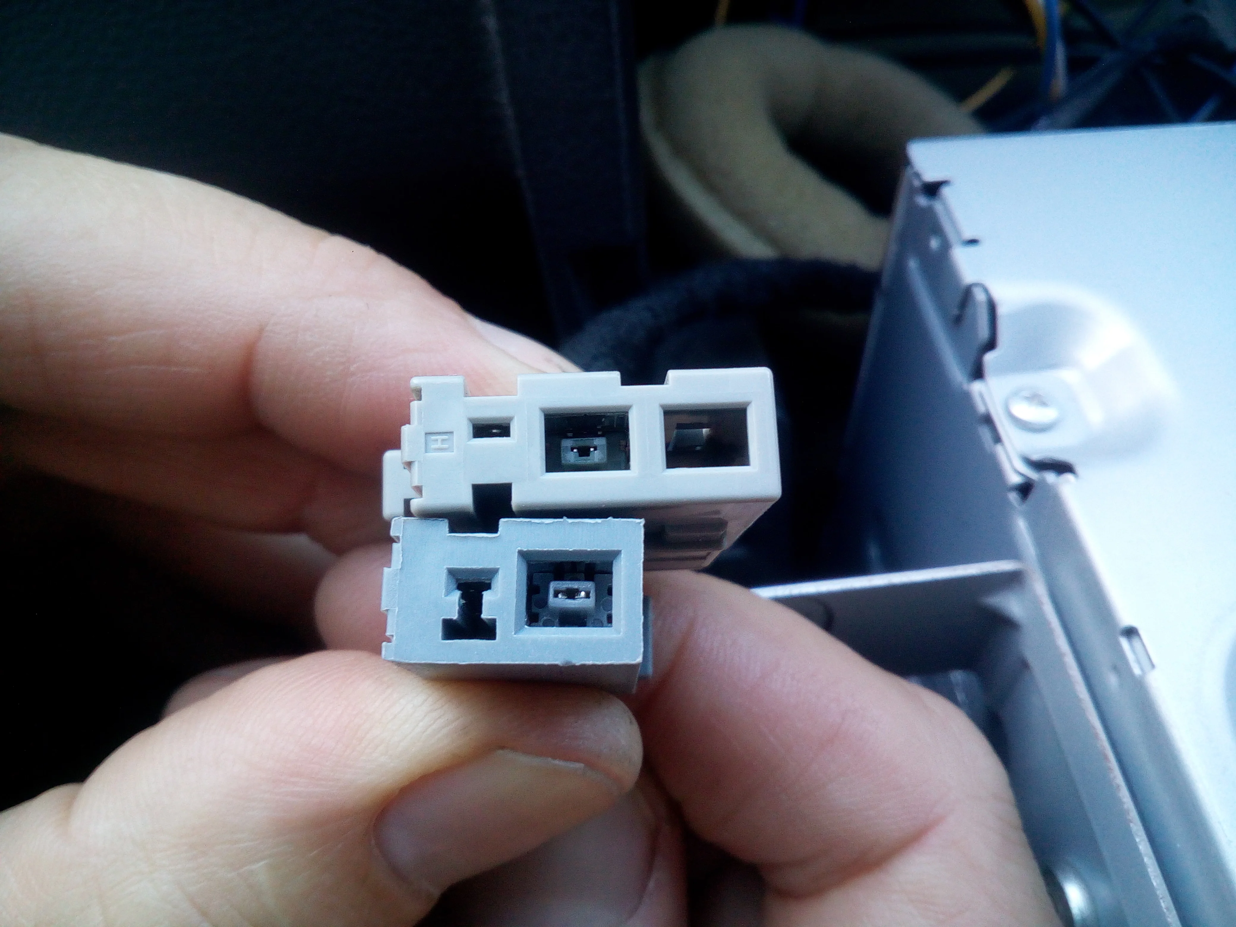 повелся на отзыв с Ниссан лиф. на азе0 13 года, комплектации С. НЕ ПОДХОДИТ! !! родные провода резать не стал. заколхозил. отрезал одну сторону, на другом разъёме прорезал паз. всё подошло. все работает. сверху на фото родной, внизу который пришёл