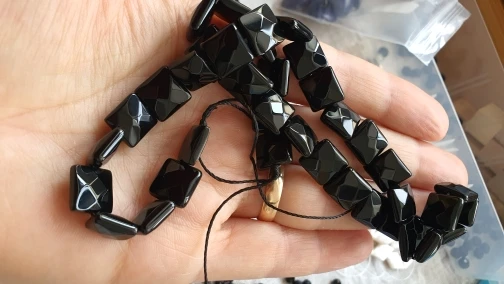 Бусины прямоугольные из натурального черного агата, для изготовлени...