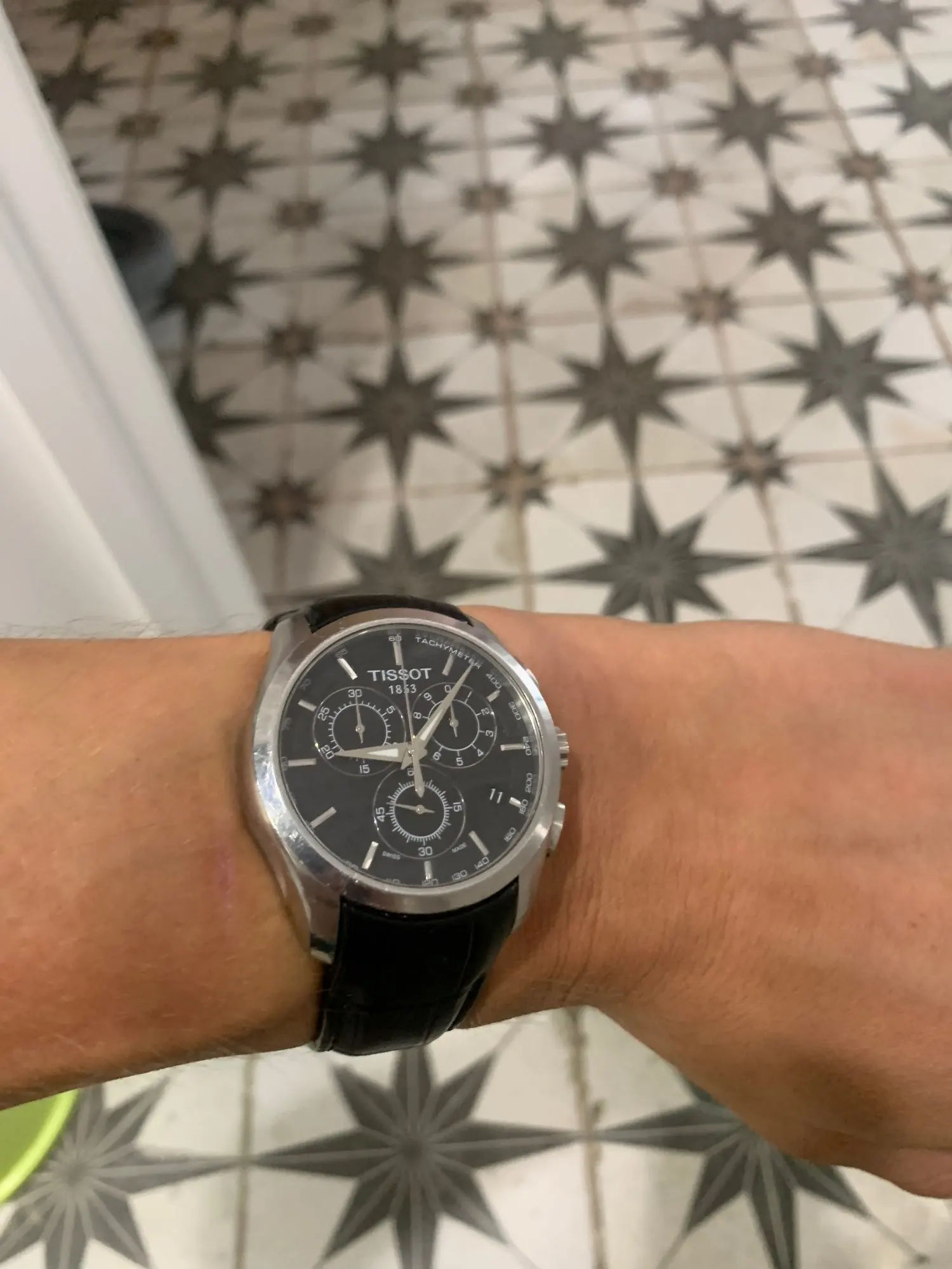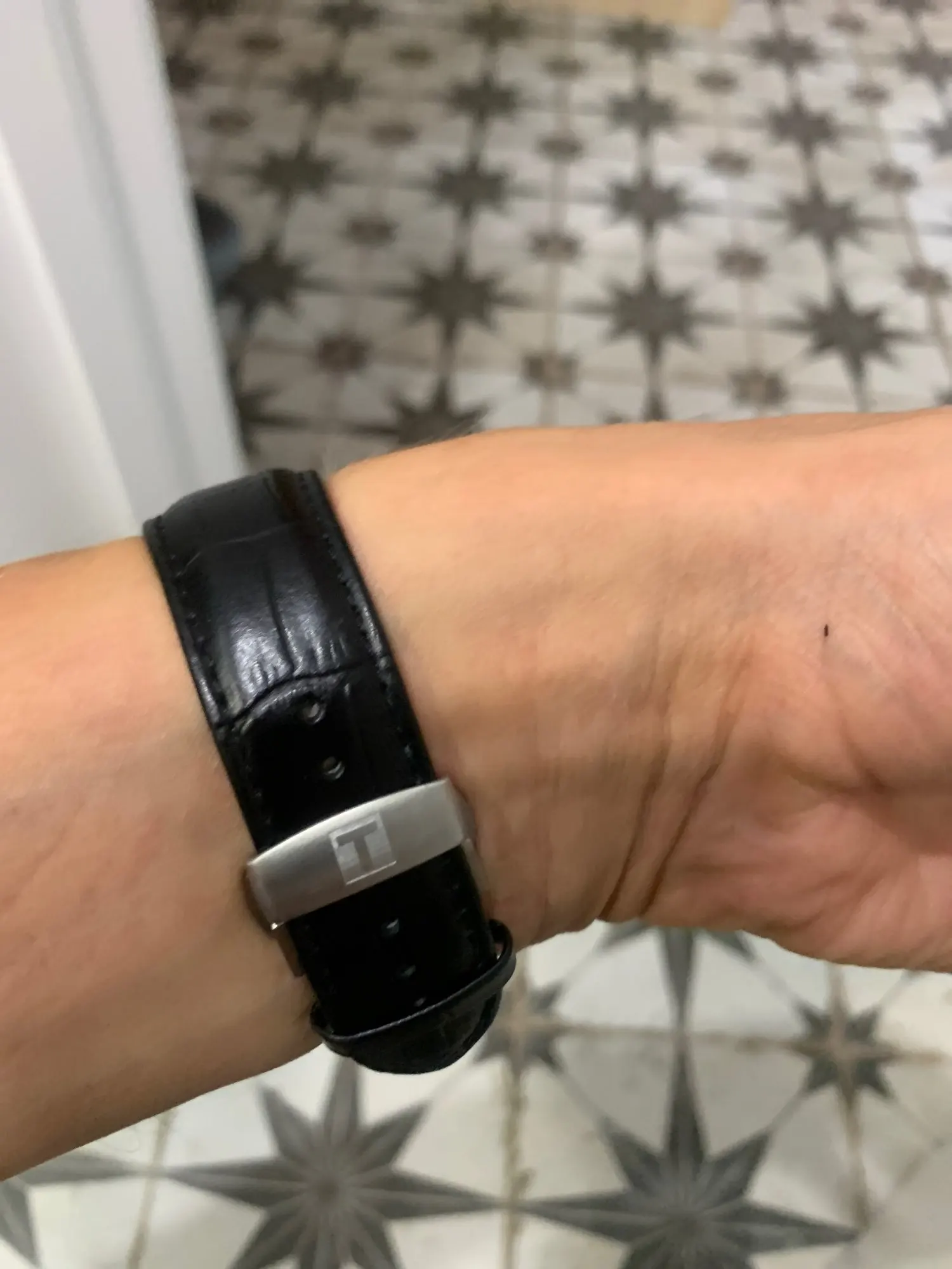 23 мм (Пряжка 20 мм) T035617A Высококачественная Серебряная Пряжка-бабочка + T035439 черный ремешок из натуральной кожи для наручных часов мужской