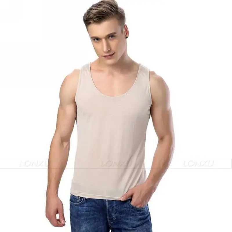 Мужская майка из 100% шелка, майка, майка, футболки, рубашки без рукавов, Размеры S XL