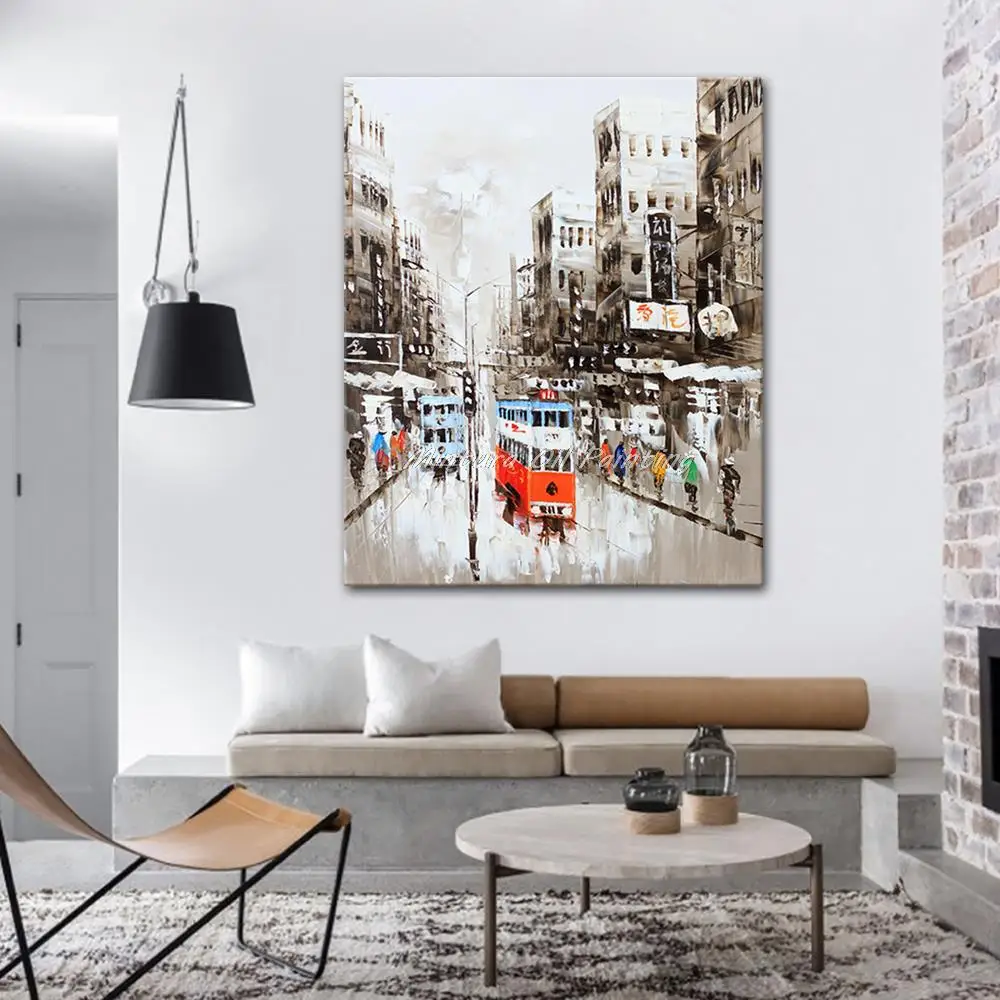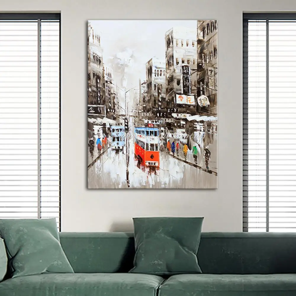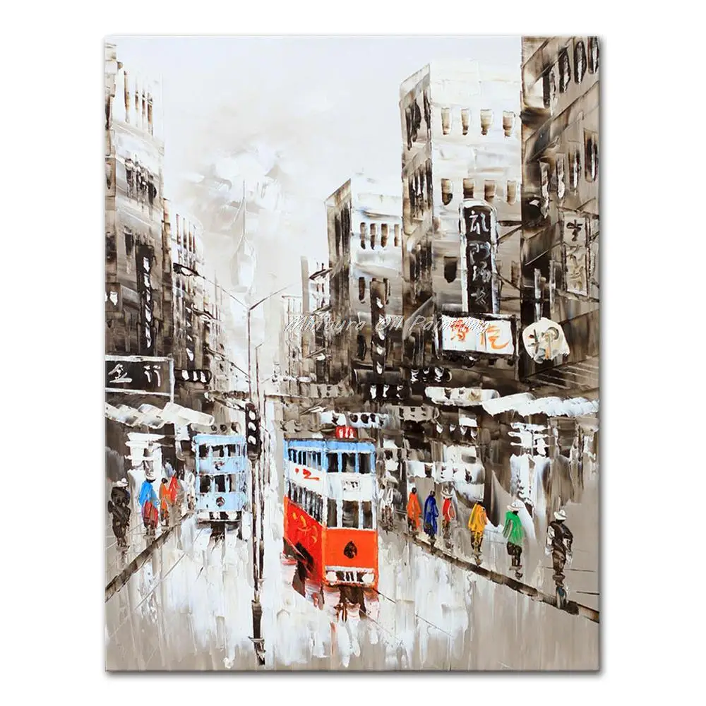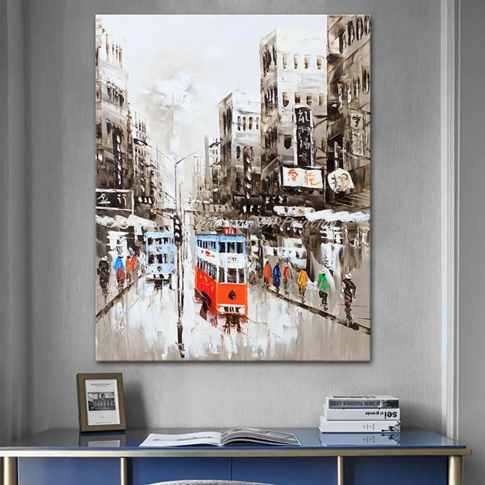 Mintura ручная роспись в гонконгском городском пейзаже картина маслом на холсте Современная abstrct Настенная картина для гостиной домашний декор