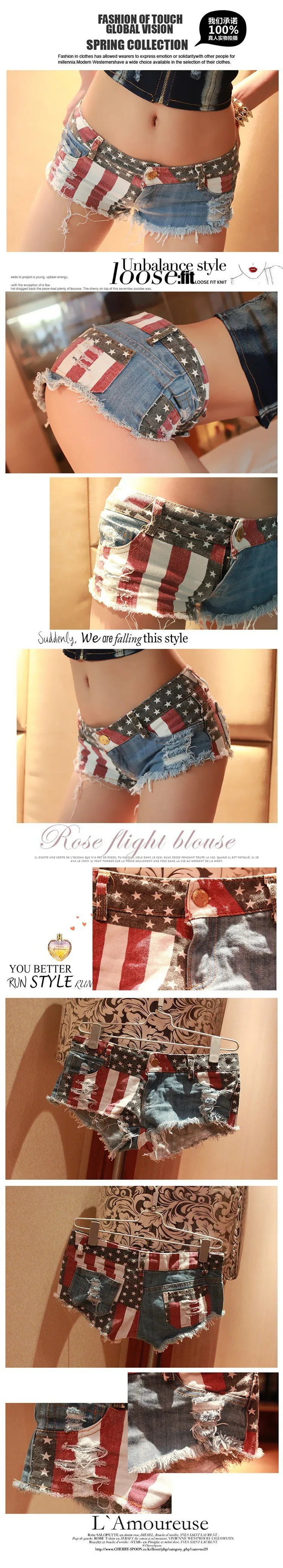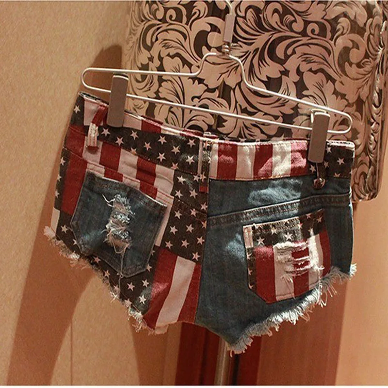 Женские джинсовые шорты, из чистого хлопка, с дырками, сексуальные шорты в полоску с флагом, женские джинсовые шорты, 1 шт.