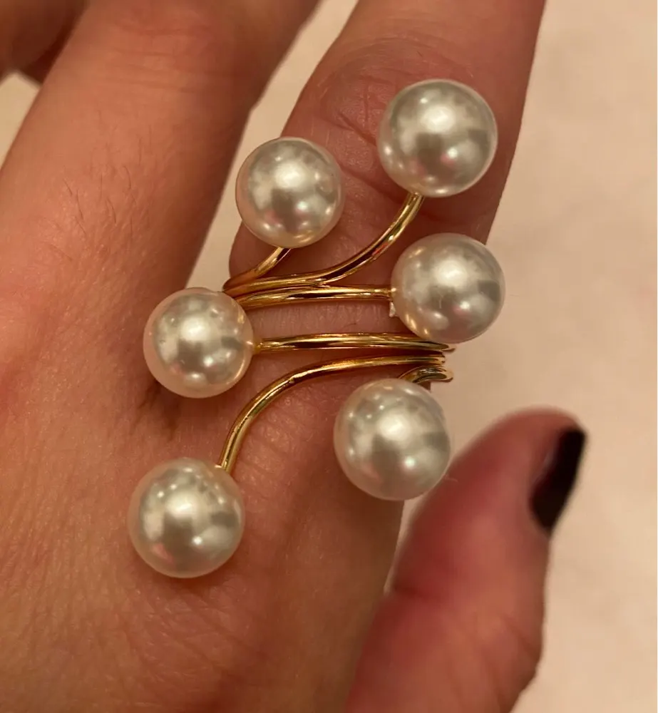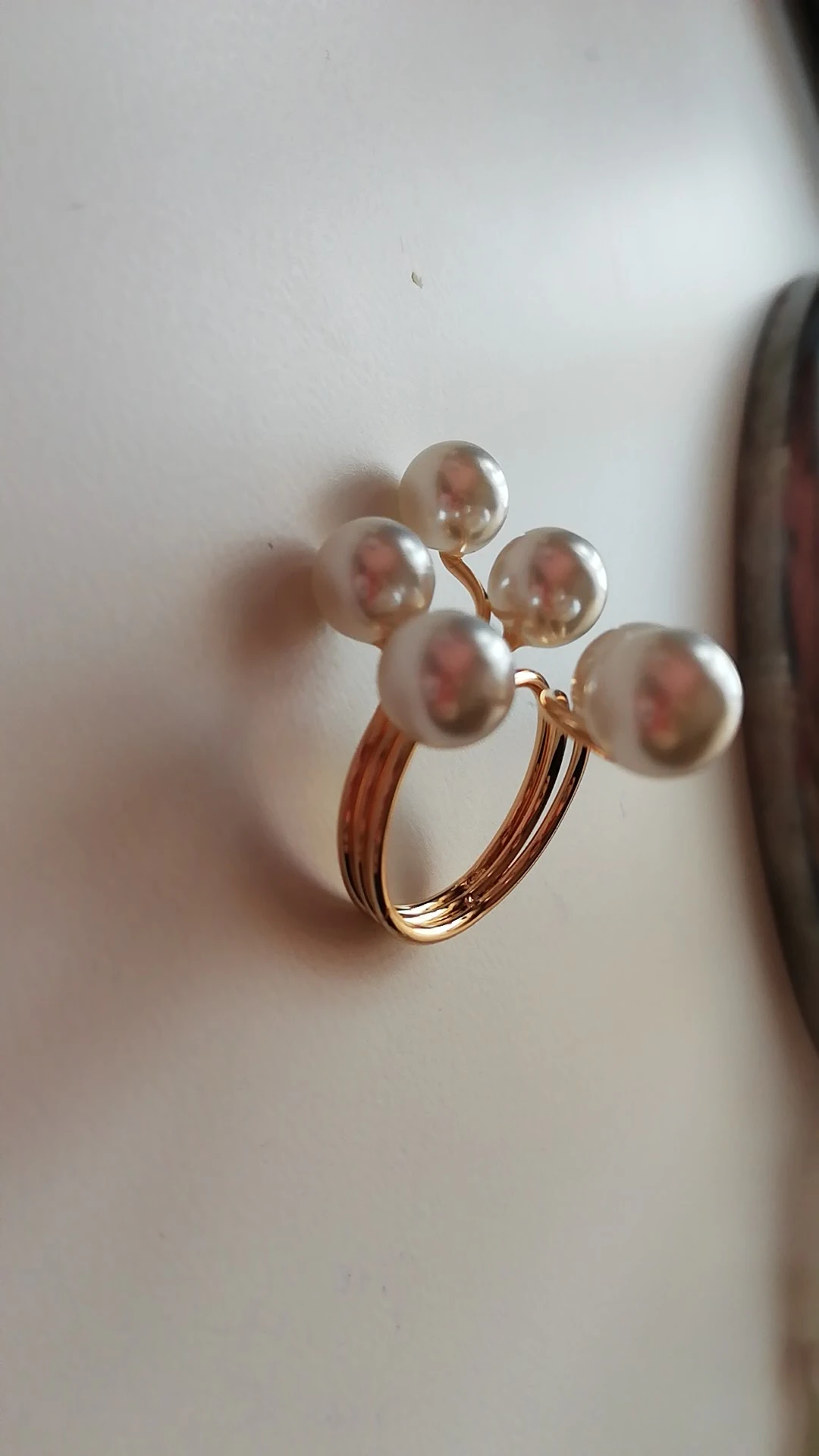 Женское позолоченное кольцо, элегантное регулируемое кольцо с имитацией жемчуга