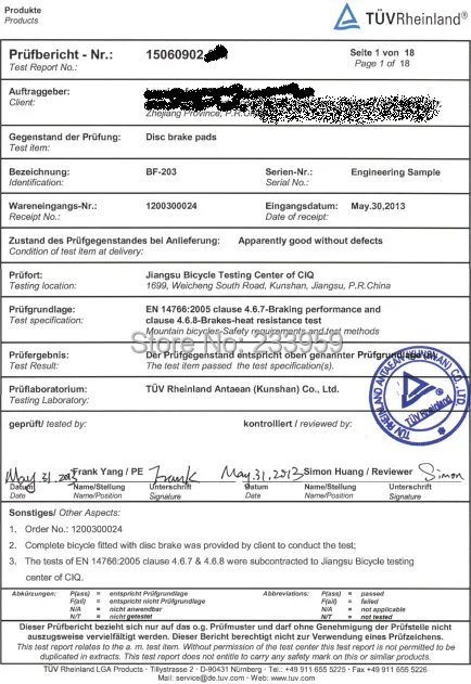 1. Наши тормозные колодки протестировали тест TUV и AOV тест.