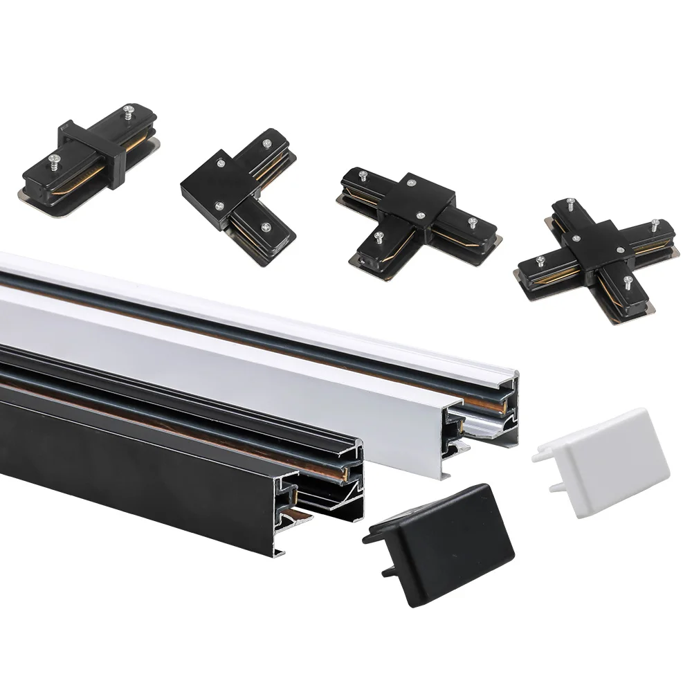Рельсы 1 м рельсы, алюминиевый фитинг, 1 метр, 2 провода, соединитель, система треков, приспособление, черный, белый цвет, Универсальные рельсы, 10 шт.лот