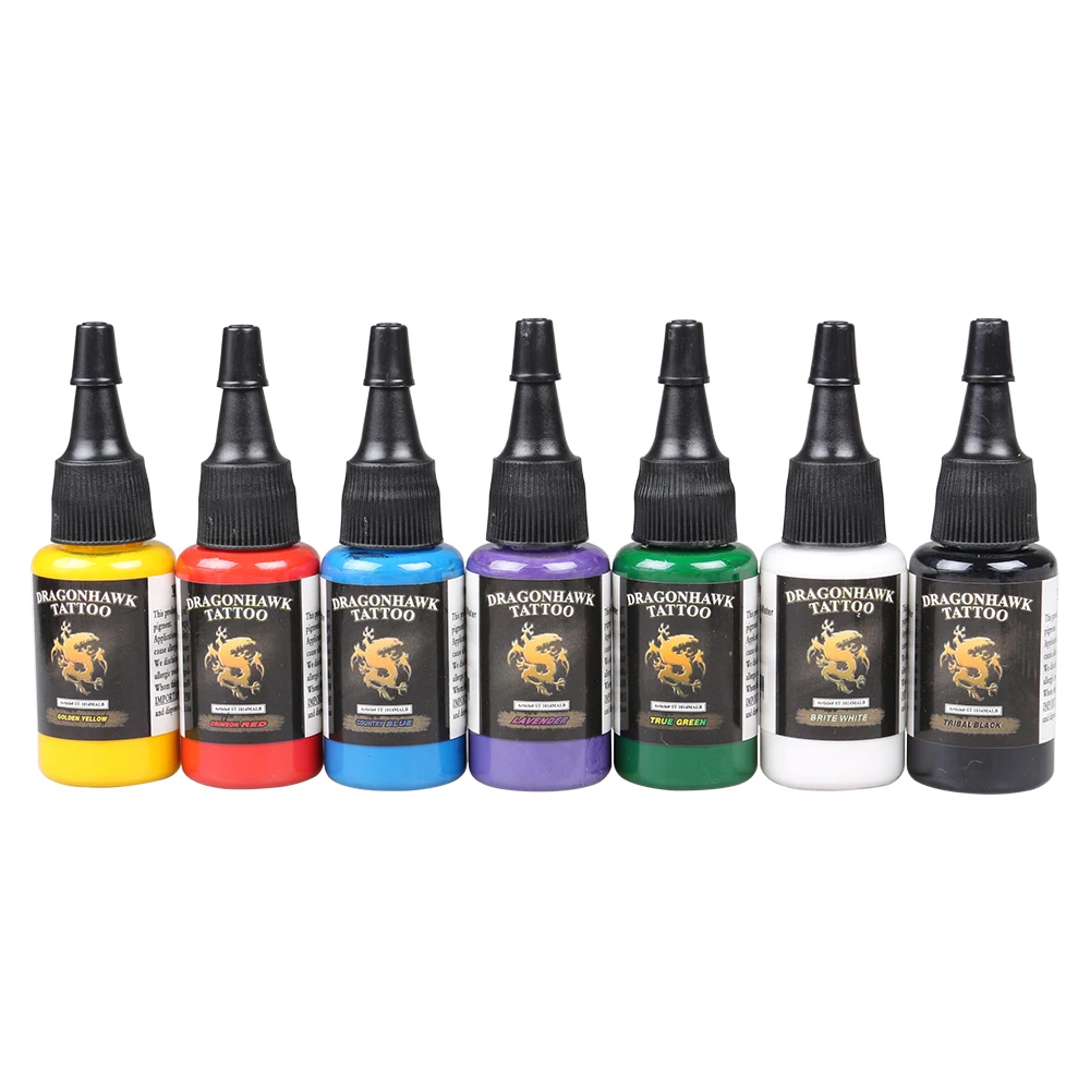 Чернила для тату Dragonhawk 7-упаковка, набор основных цветов, бутылки 0,5 унции