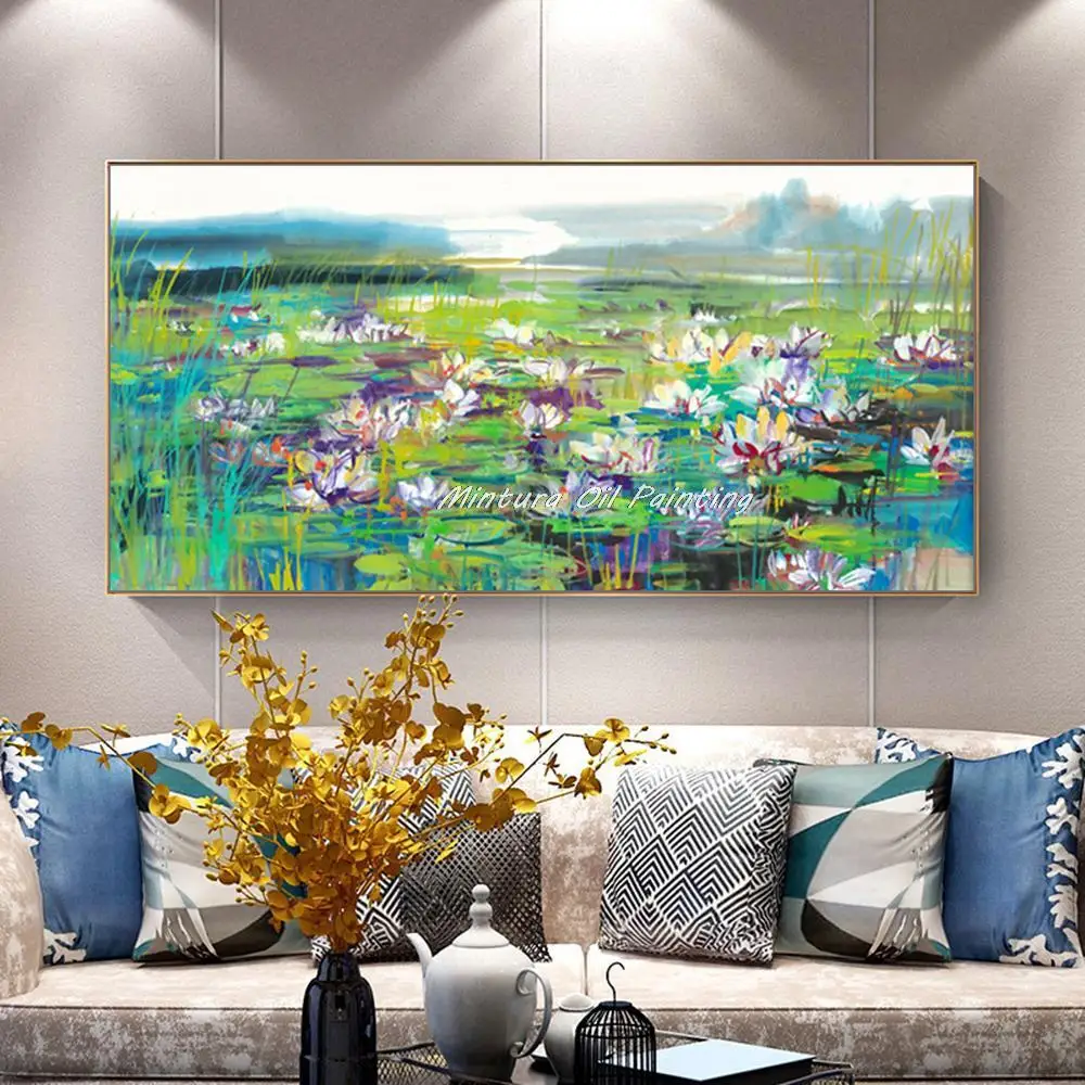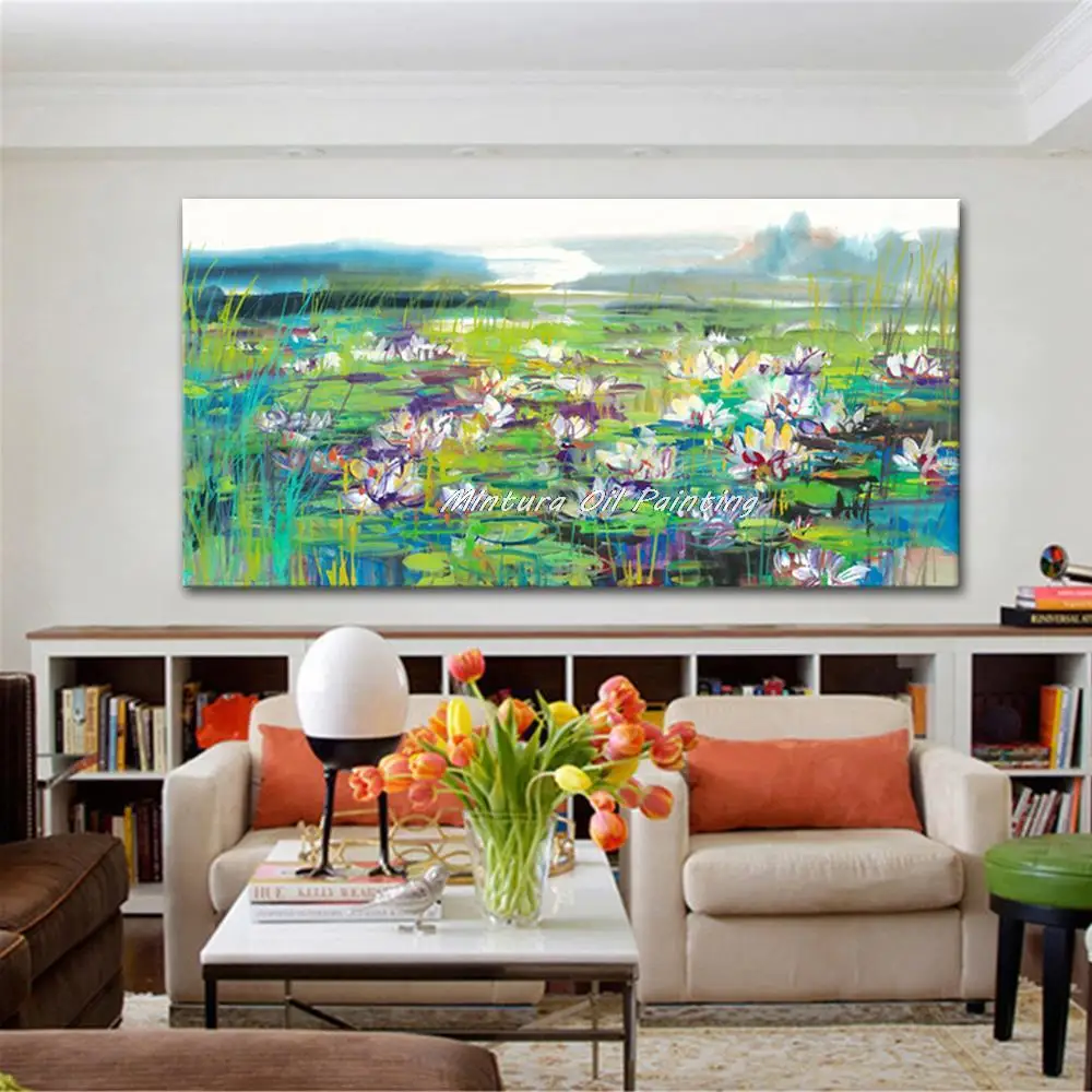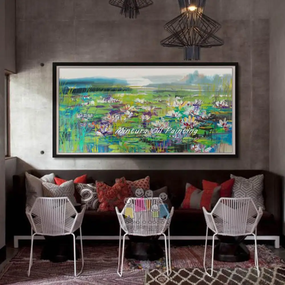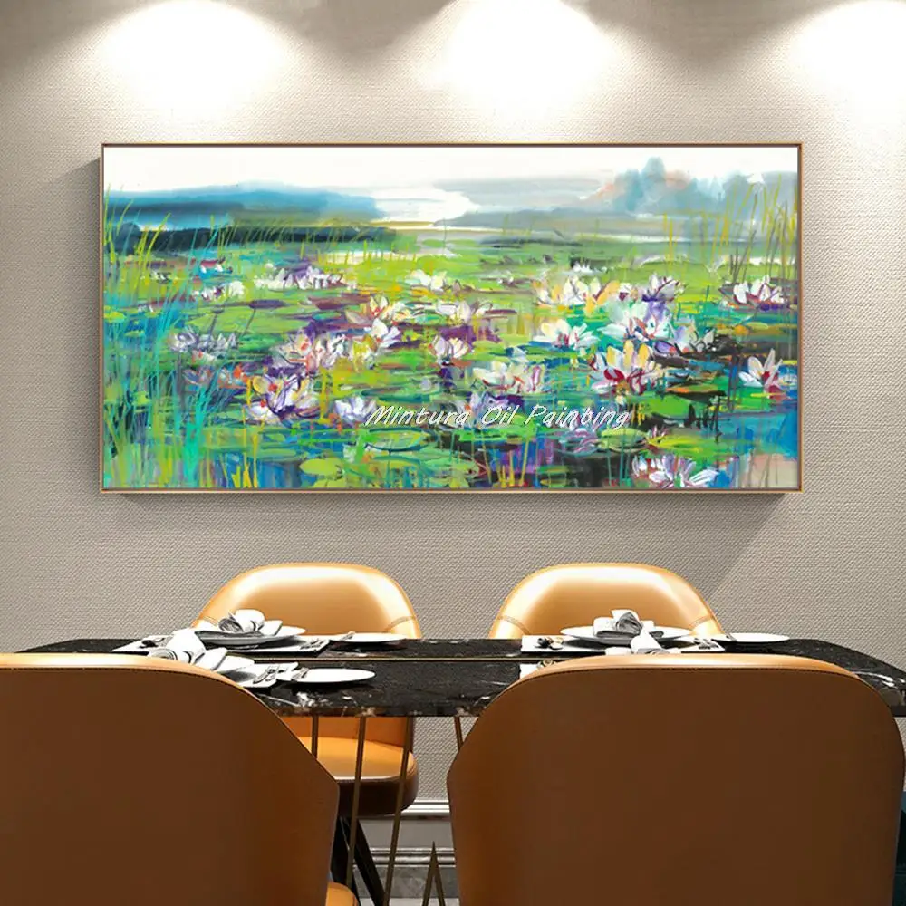 Mintura ручная роспись пейзаж с лотосами картина маслом на холсте Ручная работа цветы Настенная картина для гостиной спальни украшение дома