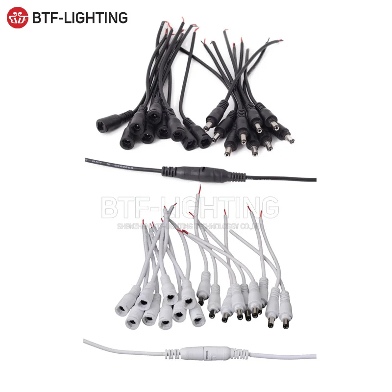 5 пар разъемов постоянного тока с фиксаторной пряжкой белыйчерный 15 см длина провода, DC 5,5x2,1 мм Мужской Женский Разъем для источника питания