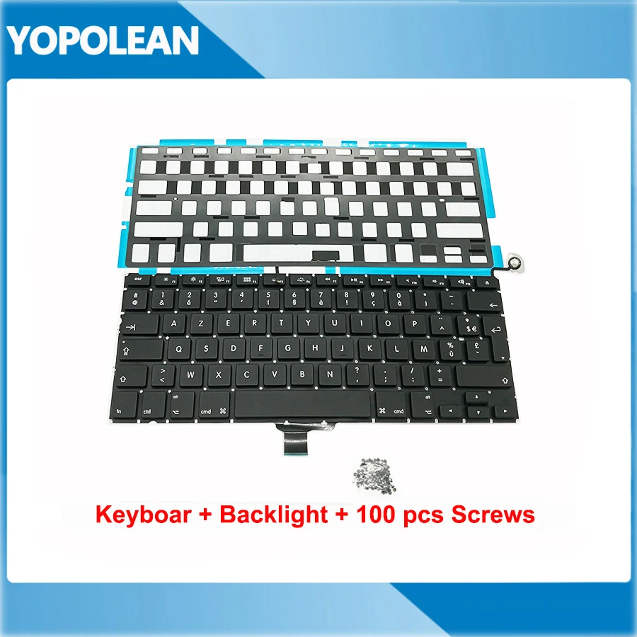 Совершенно новая Французская клавиатура Azerty для Apple Macbook Pro 13 дюймов A1278 с подсветкой + винты 100 шт. 2009 - 2012