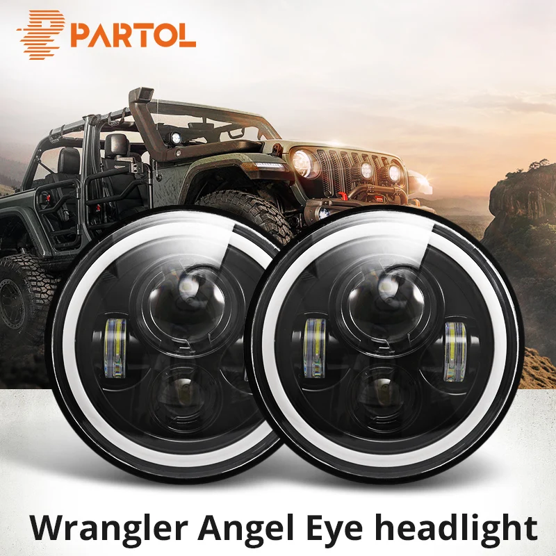 Partol 7 "светодиодный фары 60 Вт высокий низкий пучок светодиодный H4 Halo Ангел глаз DRL Янтарный Включите сигнал для Jeep Wrangler JK для Land Rover
