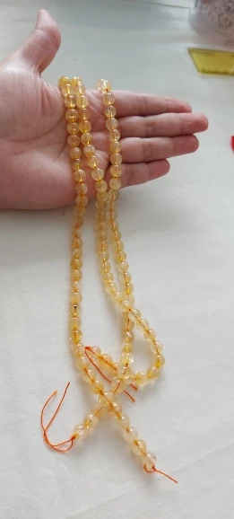 Não gostei da qualidade das contas, veio muito craquelada. A princípio parece ser citrino verdadeiro por ter frieza nas contas, mas não sei ao certo se é genuíno.