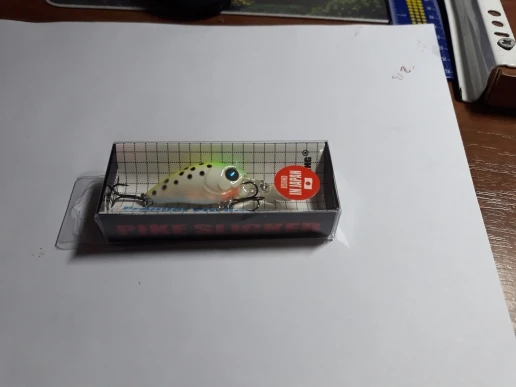 в этот раз посылка шла долго и наклейку не положили. воблер хороший