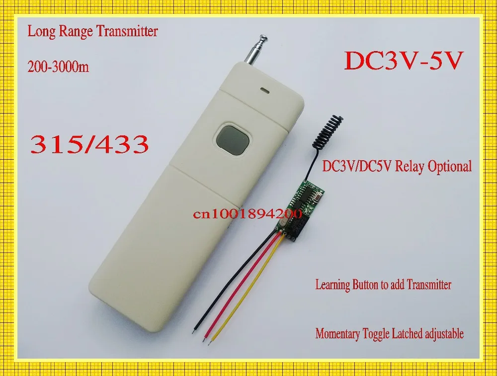 Мгновенный ------------- нажмите кнопку передатчика и удерживайте, реле приемника включено, кнопка отпустите, реле приемника выключено.