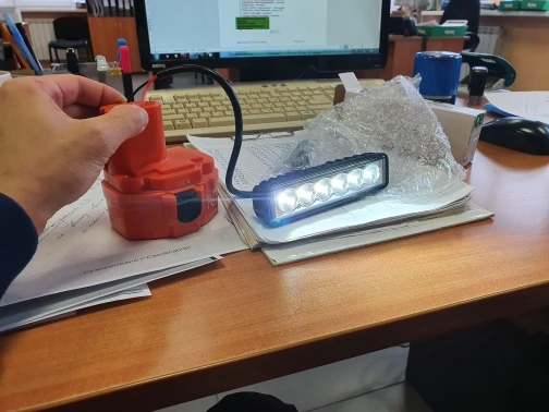 Отлично светит от аккума 18в, алюминиевый корпус, ещё один закажу