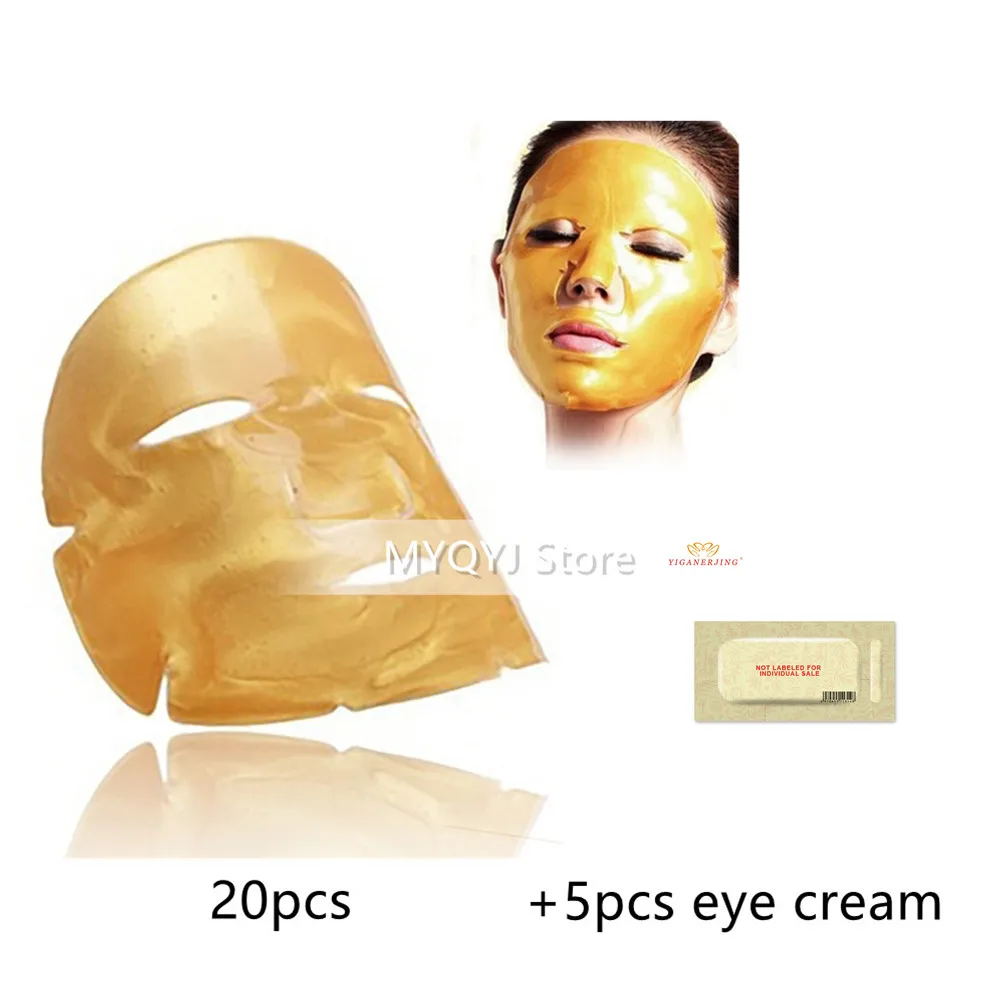 20 шт.лот Золотая биоколлагеновая маска для лица кристаллическая Золотая пудра коллагеновая маска для лица увлажняющая Антивозрастная с подарком